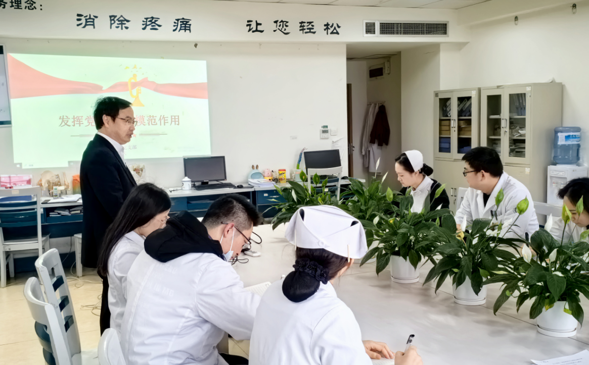 2024年3月11日,疼痛科党支部召开了党员大会。党支部书记刘庆主领学了二十届中央纪委三次全会精神和全国“两会”精神等3月学习资料,并与韩聪同志进行了谈心谈话。
