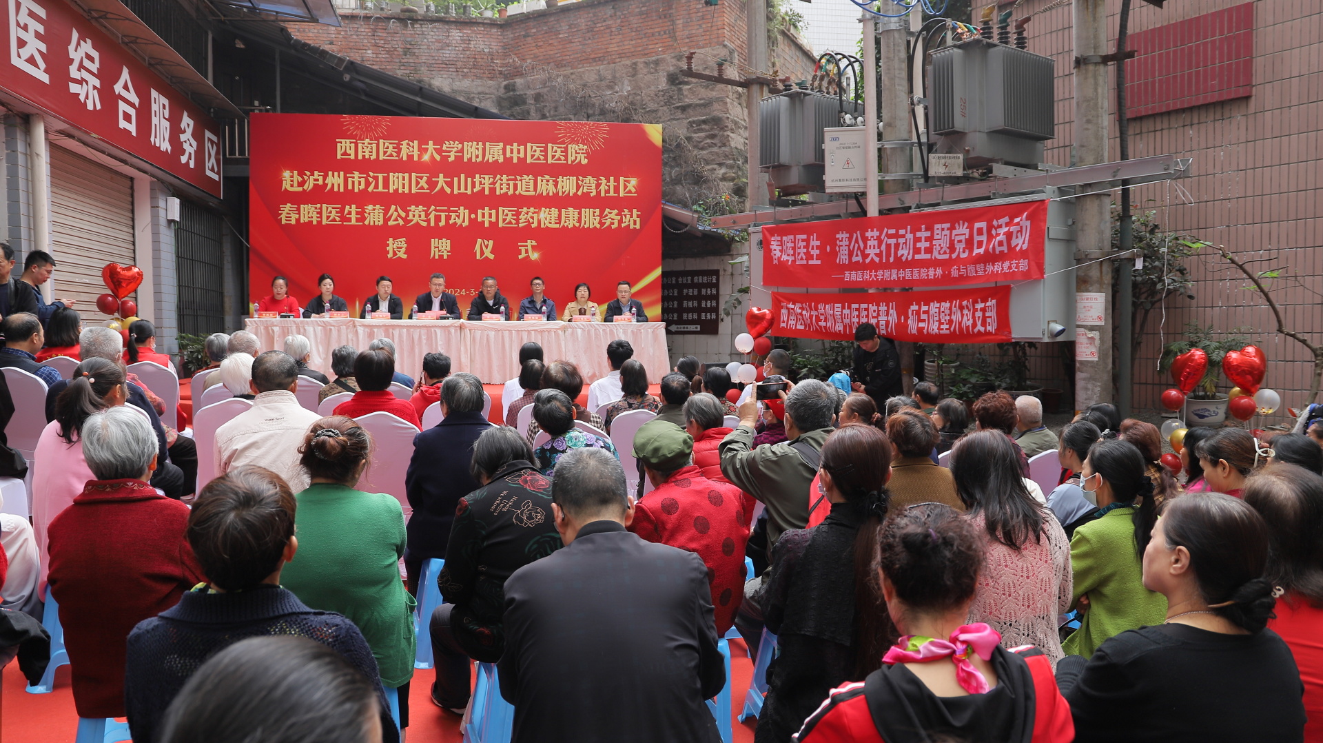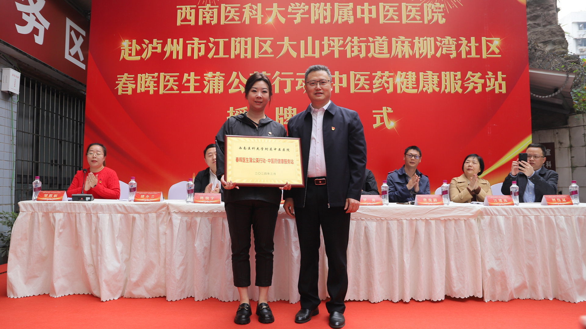 2024年3月29日,我院普外·疝与腹壁外科党支部与江阳区大山坪街道麻柳湾社区党委举行了春晖医生蒲公英行动·中医药健康服务站授牌仪式,医院党委书记李志、江阳区卫生健康局副局长陈晓宇、大山坪街道分管主任唐俊鹏、麻柳湾社区党委书记胡小兰、相关党支部成员及社区人员等参加了仪式。