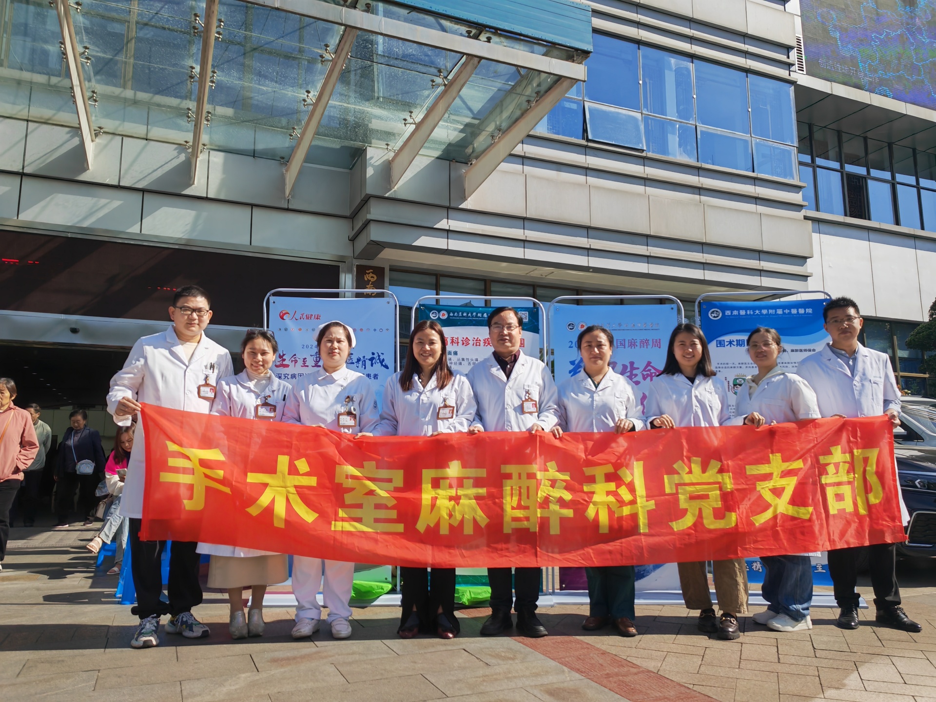 3月25-31日,手术室麻醉科党支部联合疼痛科党支部在城北门诊广场举行了主题为“生命至重,大医精诚——深究病因讲麻醉,诚心实惠帮患者”的“中国麻醉周”义诊活动。