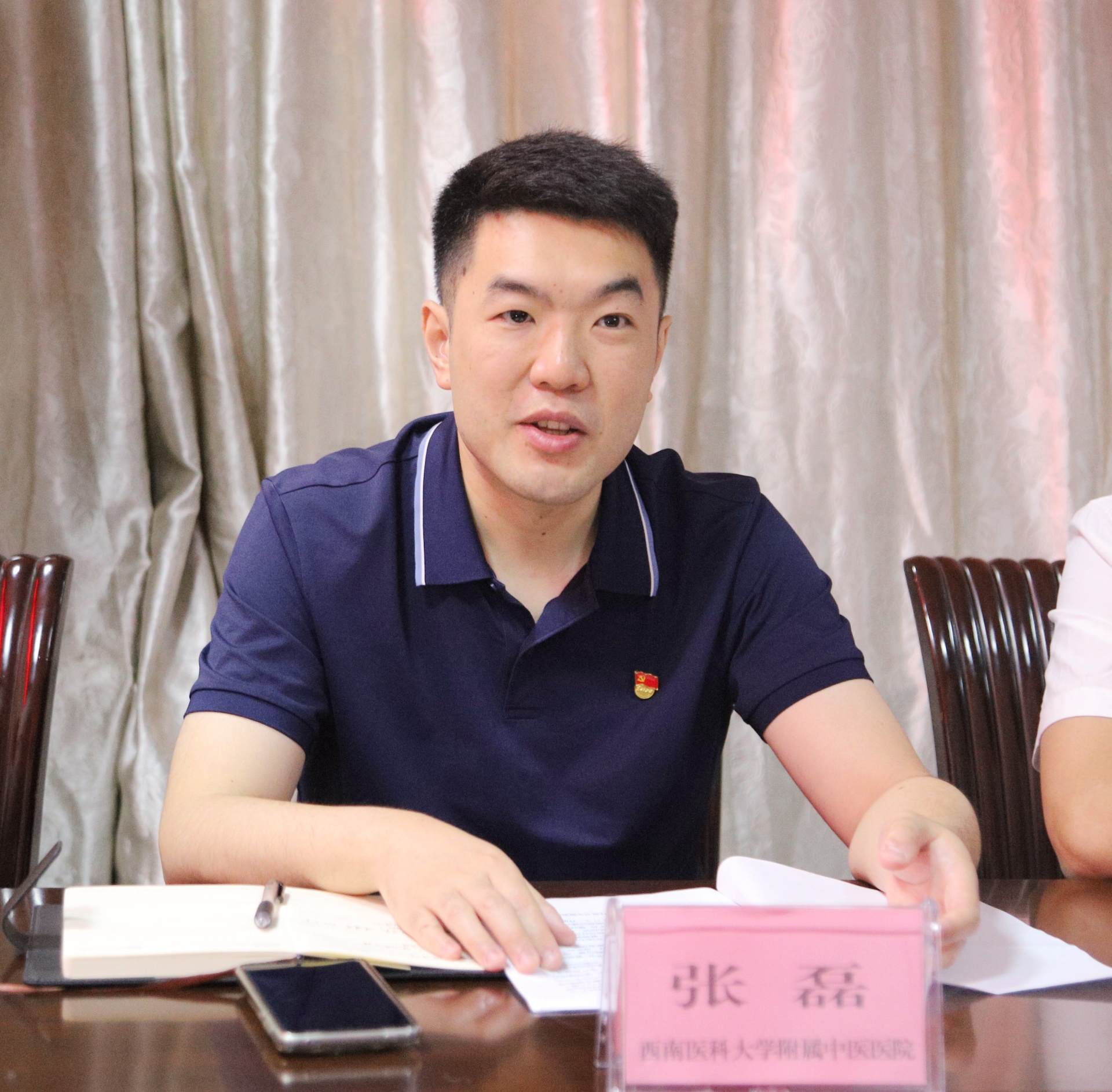张磊讲话,他介绍了医院基本情况和春晖医生蒲公英行动·中医药健康服务站的建设情况,希望双方以此次授牌为契机,进一步充分发挥中医药特色优势,进一步传播中医药传统文化,进一步挖掘中医药优势资源,深入基层,深入群众,为泸州市及周边地区的人民群众提供更加优质的中医药健康服务,助推泸州新时代区域医疗健康中心和中医药强市建设,为四川省国家中医药综合改革示范区和中医药强省建设贡献积极力量,以更加优异的成绩向新中国成立75周年献礼。