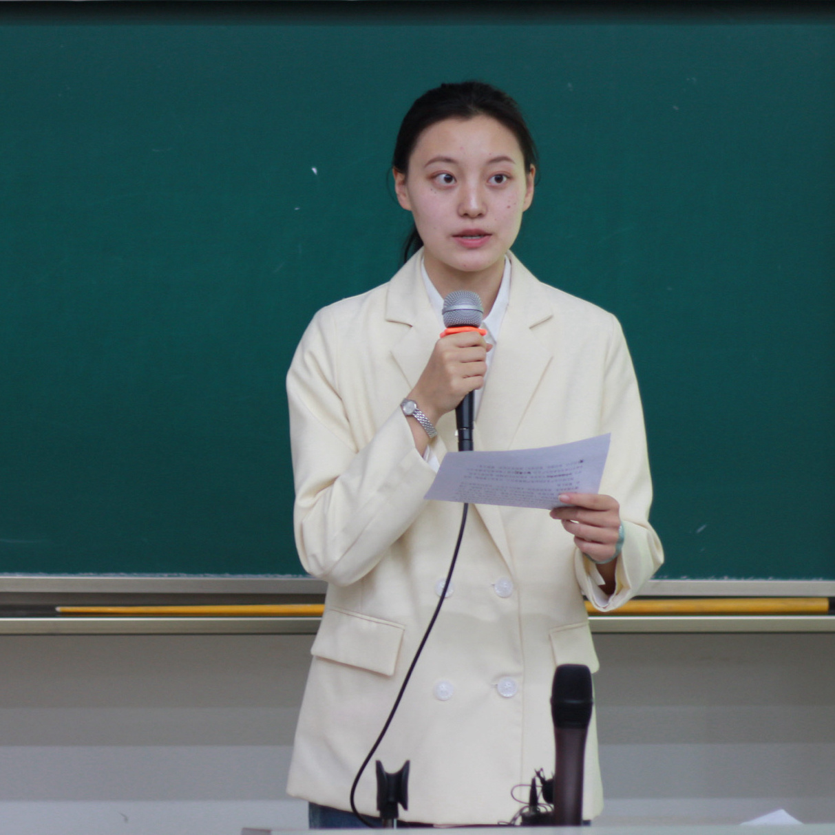 中西医结合学院2023级王烁岚代表全体学员在开班典礼上发言。