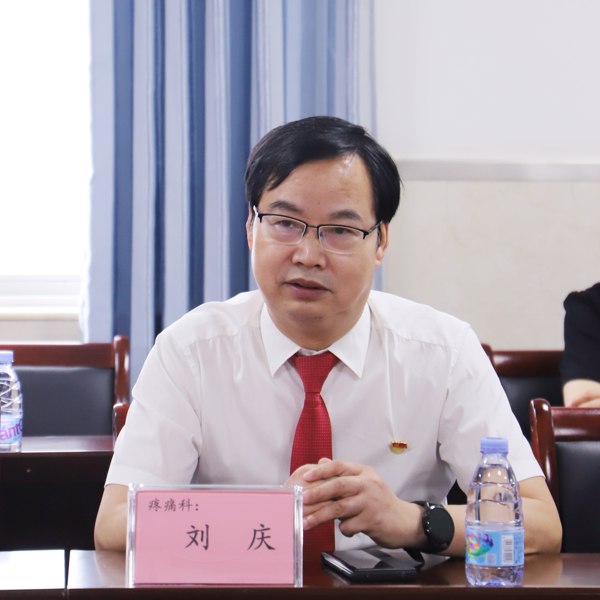 刘庆代表疼痛科党支部发言。他表示通过此次授牌仪式,将进一步促进中医药优质服务资源下沉,推动分级诊疗及基层优势专科建设。