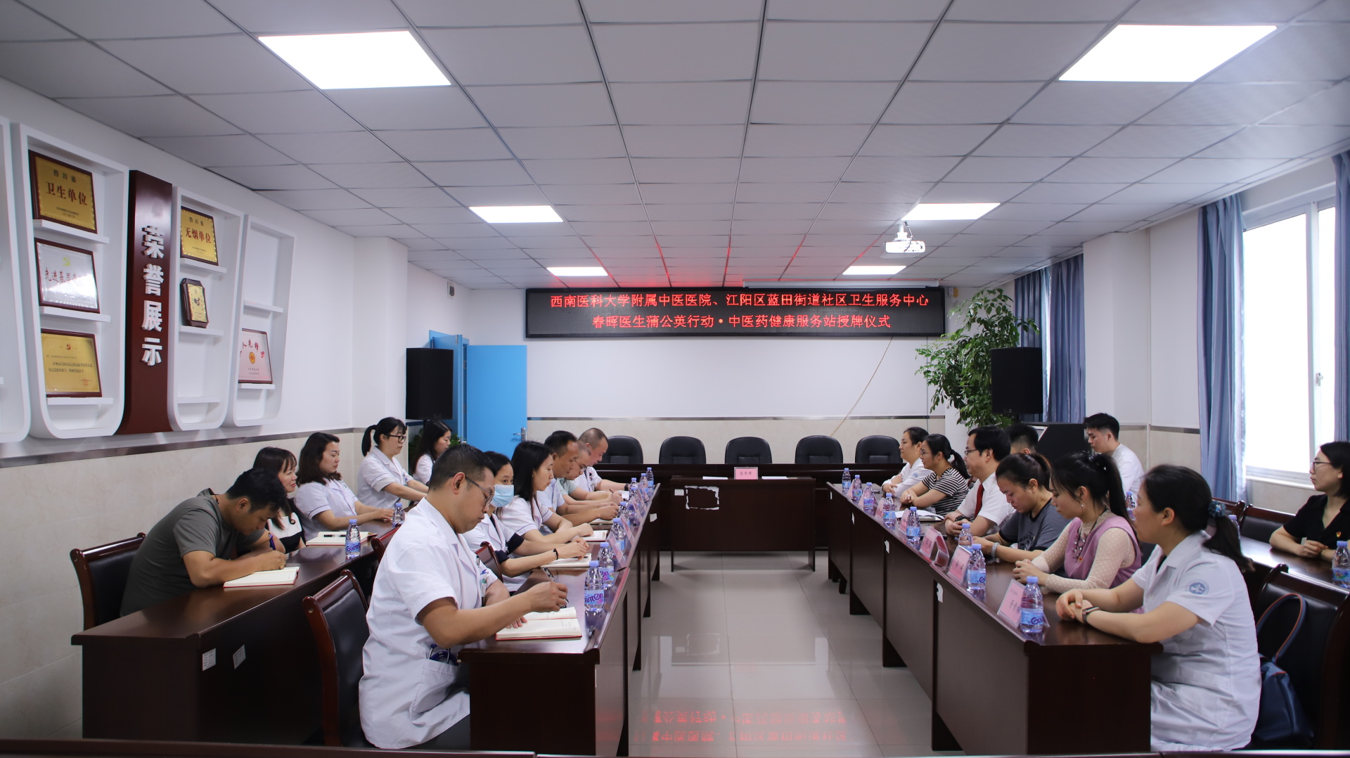 随后,张磊为蓝田街道社区卫生服务中心授予了“春晖医生蒲公英行动·中医药健康服务基层联盟单位”牌匾。