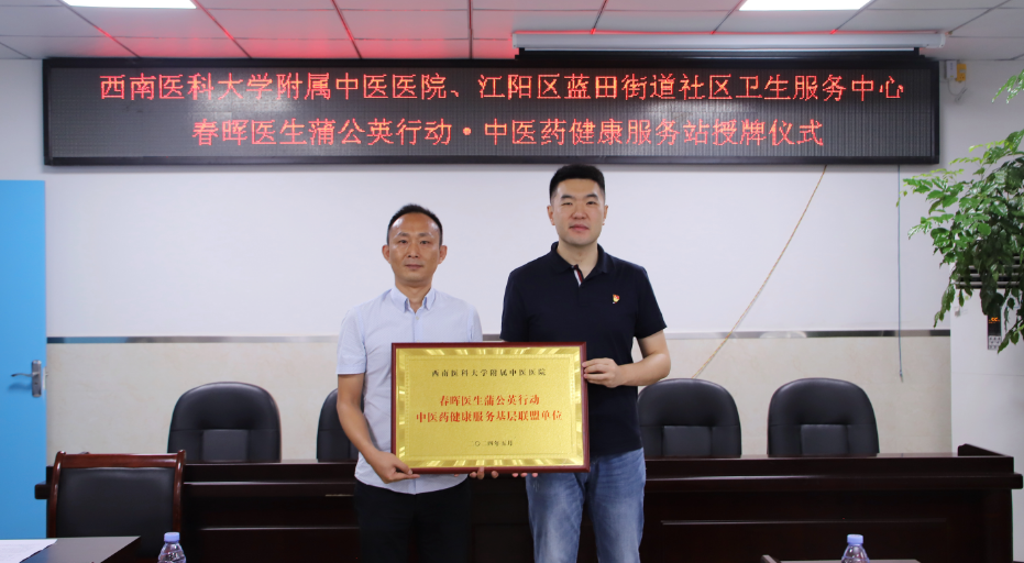 2024年5月17日,我院疼痛科党支部、宣传统战党支部与江阳区蓝田街道社区卫生服务中心举行了春晖医生蒲公英行动·中医药健康服务基层联盟单位授牌仪式,医院副院长张磊、蓝田街道社区卫生服务中心党支部书记罗靖、医院相关党支部成员及社区卫生服务中心人员等参加了仪式。