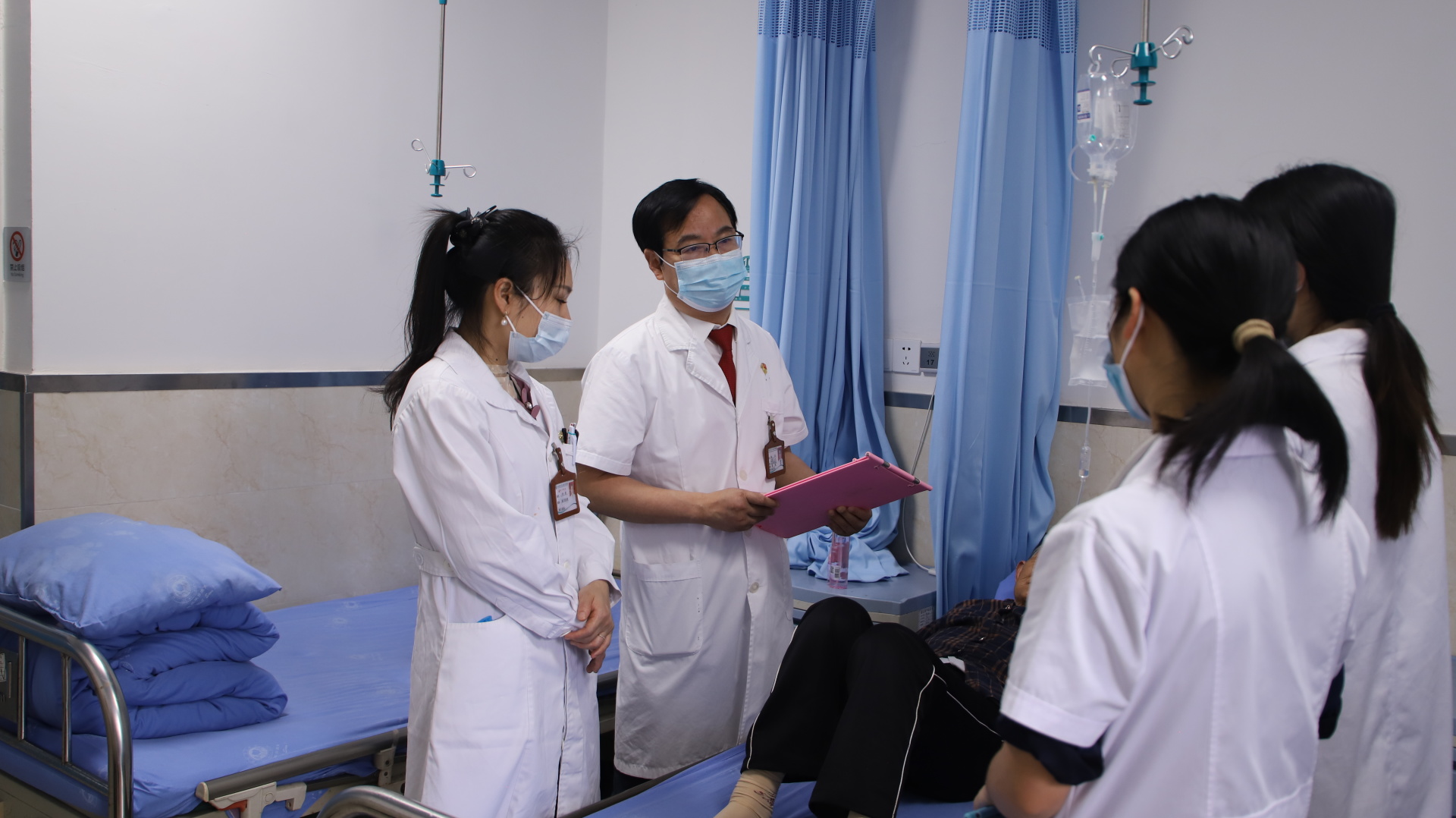 仪式结束后,医院相关党支部医务人员在社区卫生服务中心开展了教学查房,并为社区群众进行了义诊。