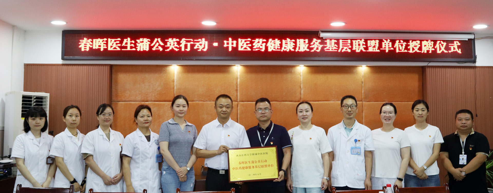 2024年5月21日,我院眼科党支部与泸州市江阳区江北中心卫生院举行了春晖医生蒲公英行动·中医药健康服务基层联盟单位授牌仪式,医院党委副书记、纪委书记鄢飞鹏,江北中心卫生院院长李林,眼科部分医护人员和卫生院部分职能部门负责人参加了仪式。