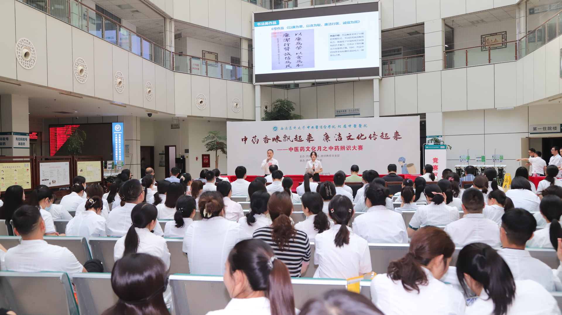 2024年5月30日,由内科党总支、继续教育党支部主办,药剂科党支部承办的“中药香味飘起来,廉洁文化传起来”中医药文化月系列活动之中药辨识大赛顺利完赛。医院副院长汪国友、董丽,相关职能部门人员及内科党总支所辖25个党支部职工、继续教育党支部学生参加了活动。
