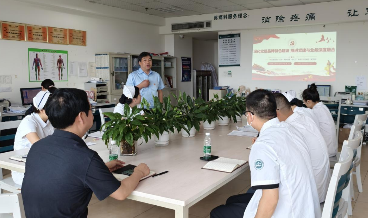 5月31日,疼痛科党支部开展学习提高日活动,邀请外科党总支支委郭永灿同志以《深化党建品牌特色建设 推进党建与业务深度融合》为题讲了党课。