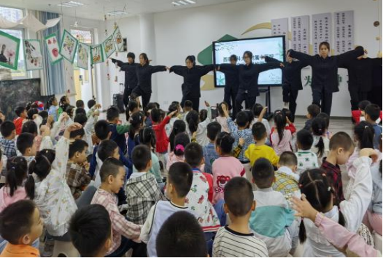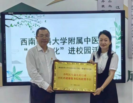 授牌仪式后,基础教工党支部余海龙同志以《端午与中医》为题为小朋友们作了专题讲座;西南医科大学的学生们还现场展示了传统养生功法“五禽戏”。