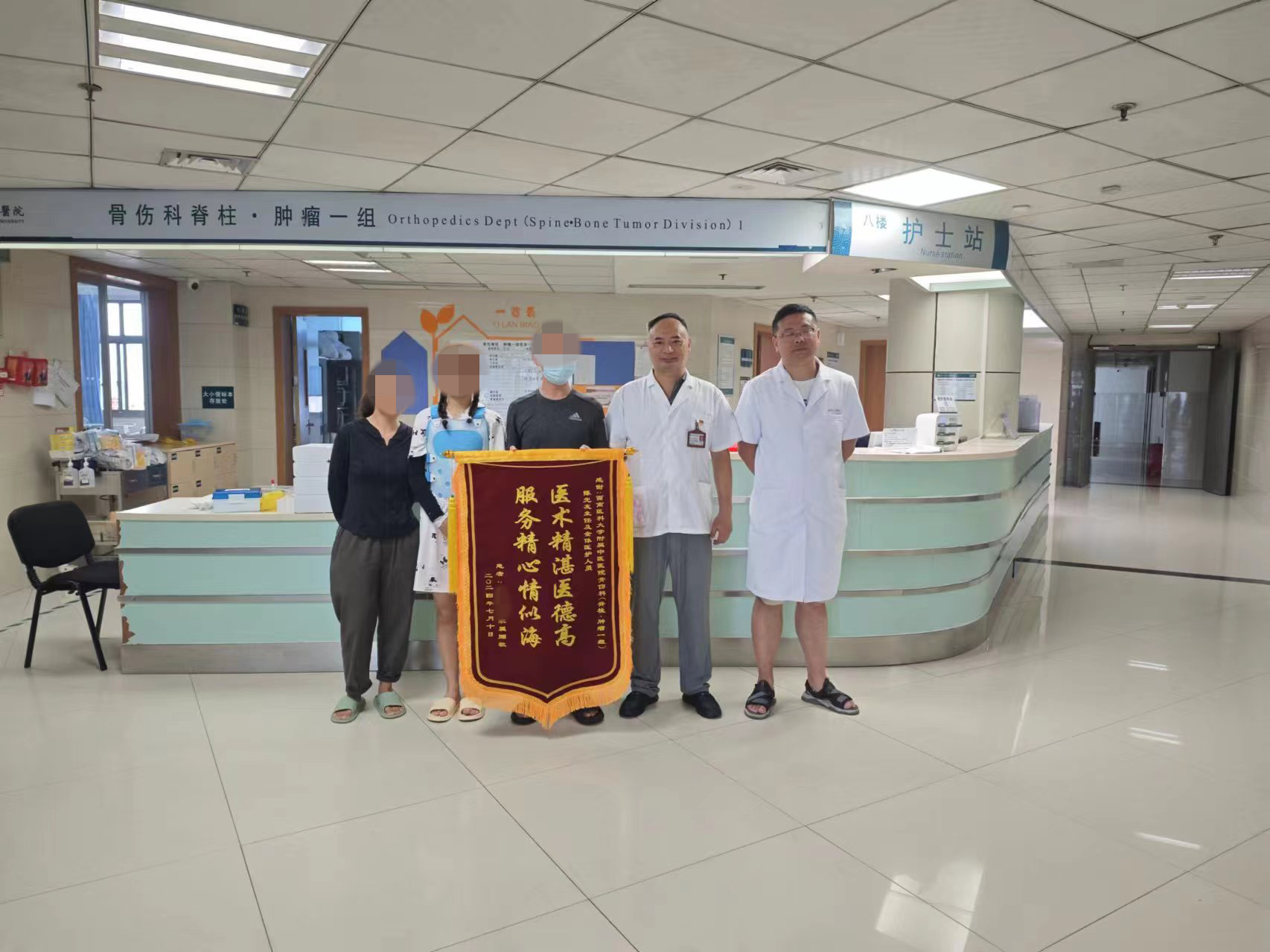 为表示感谢,甜甜父母还特地送上了一面写有“医术精湛医德高 服务精心情似海”的锦旗。
