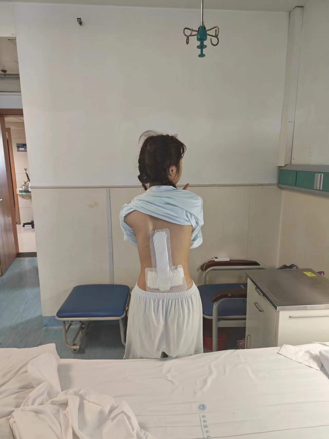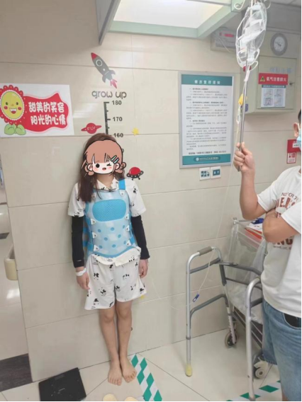 术后4天,在胸腰支具的保护下,甜甜能自行下地活动,下肢感觉及运动功能完好,身高较术前增加了4cm,成为了真正的花季美少女。