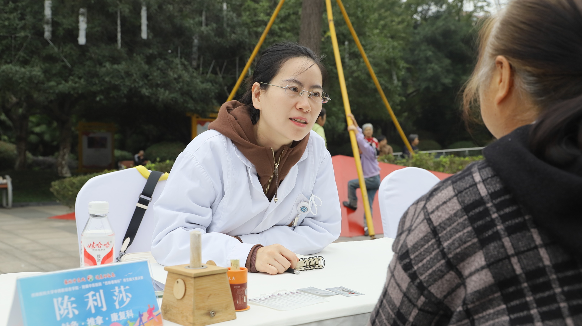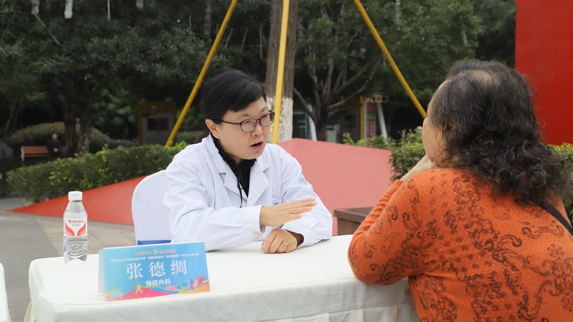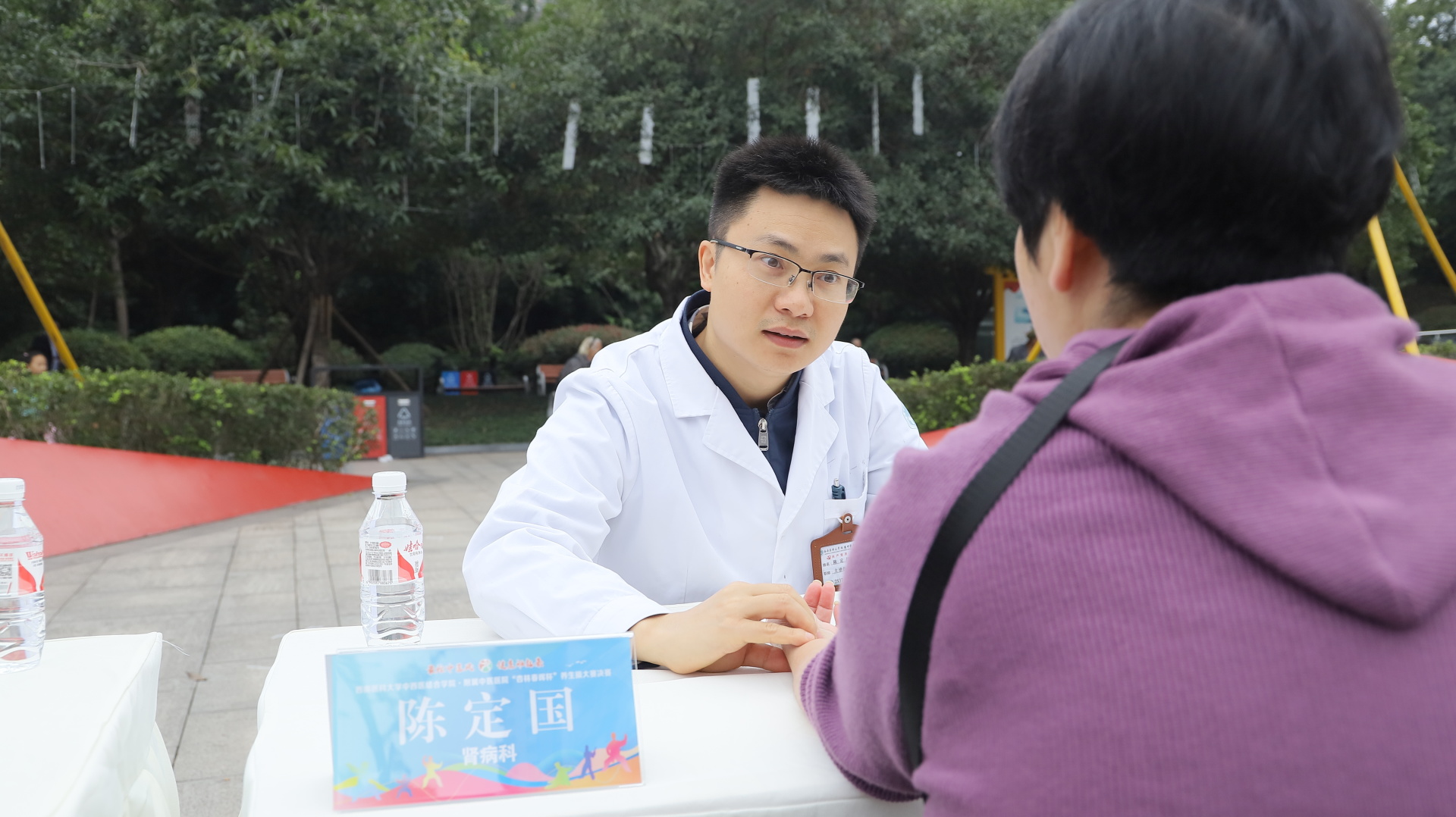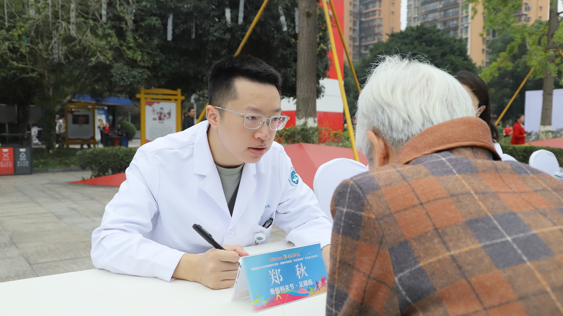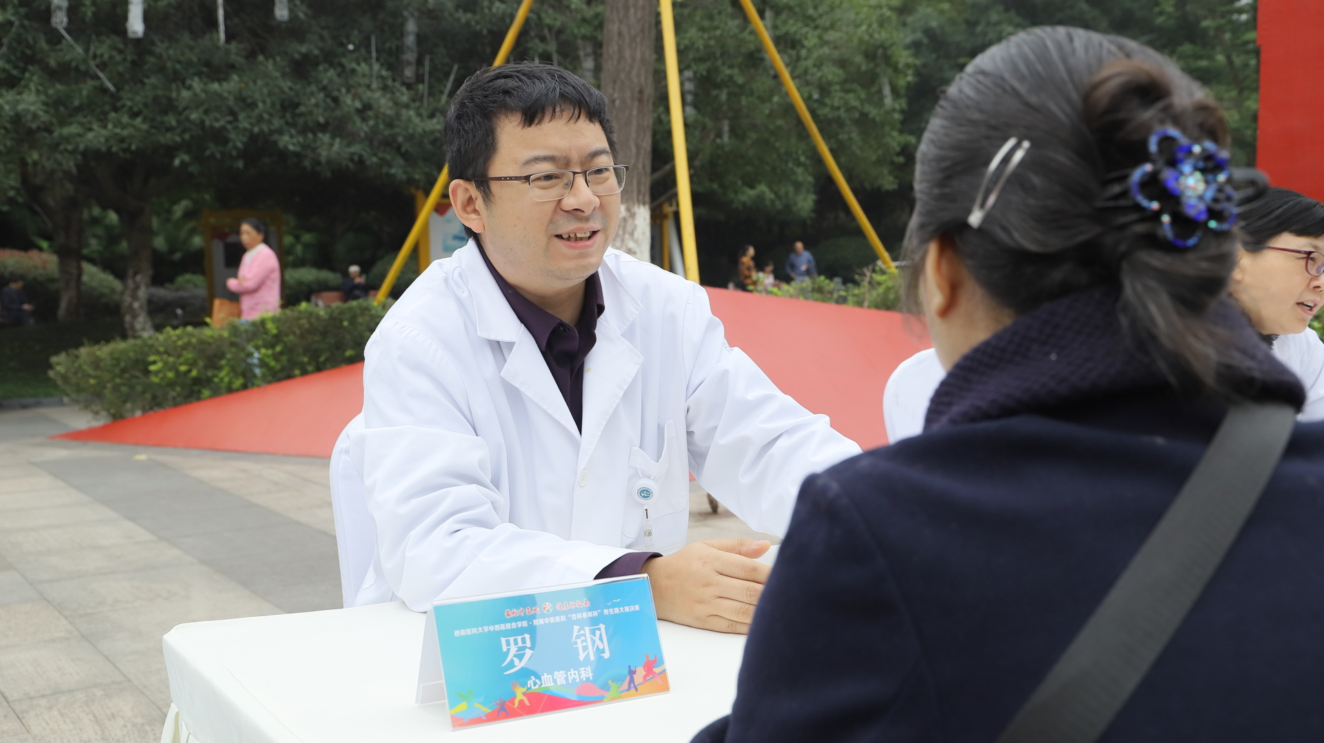 2024年11月3日,我院在江阳公园举行主题为“最炫中医风 健康动起来”的“杏林春晖杯”养生操大赛决赛。医院党委副书记雷学举、副院长张磊、泸州市融媒体中心党委副书记袁璇等领导,5位专家评委以及8支决赛队伍参加了活动。