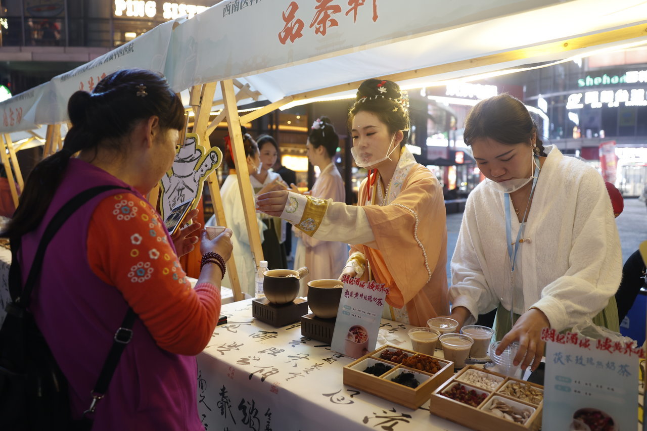 活动现场设置了名医专家义诊区、中医药技术体验区、膏方体验区、茶饮药膳品鉴区、中医药产品展示区、中医药仪器设备体验区、互动游戏区等多个区域,以市民朋友喜爱的市集呈现,让他们现场感受中医药文化的独特魅力。活动从下午三点持续到晚上八点,期间还有《十二花神》《变脸》等节目和乐队现场演出。此次活动还通过直播平台在线直播,观看人数达100万+人次。
