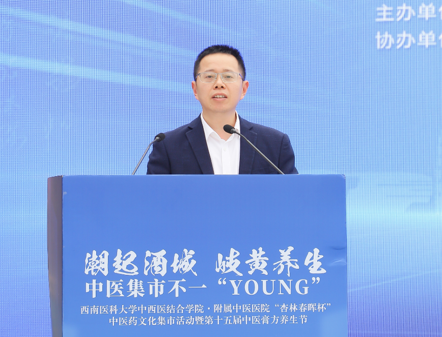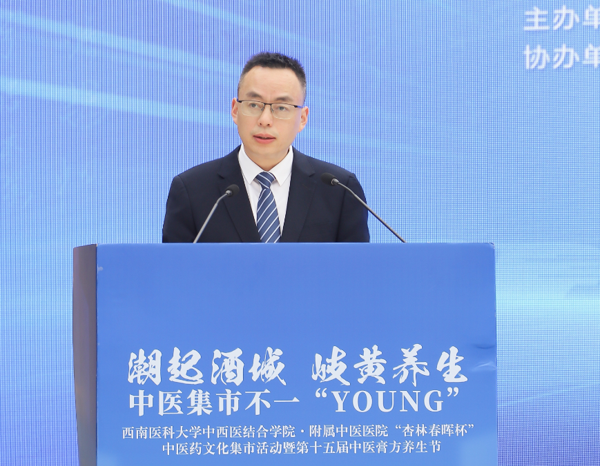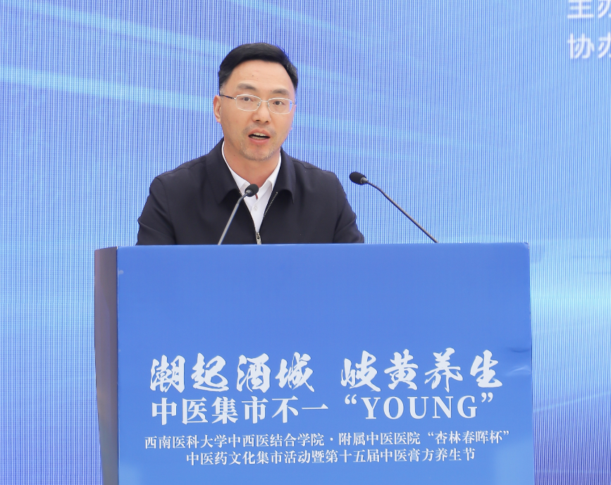 李凌讲话。他介绍了泸州的中医药非遗文化和中医药非遗旅游,表示泸州市高度重视中医药传承创新发展,积极推动旅游产业与中医药融合发展。他希望广大市民通过此次活动,能更加深入地了解中医药文化,感受中医药的魅力,享受中药味的“烟火气”。