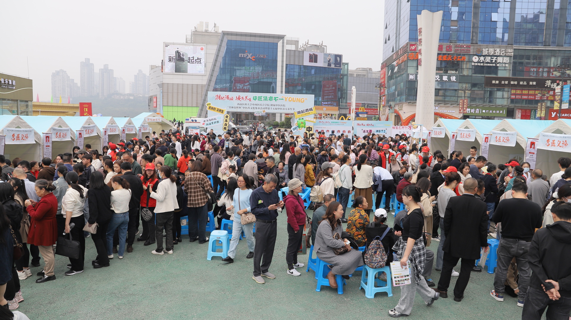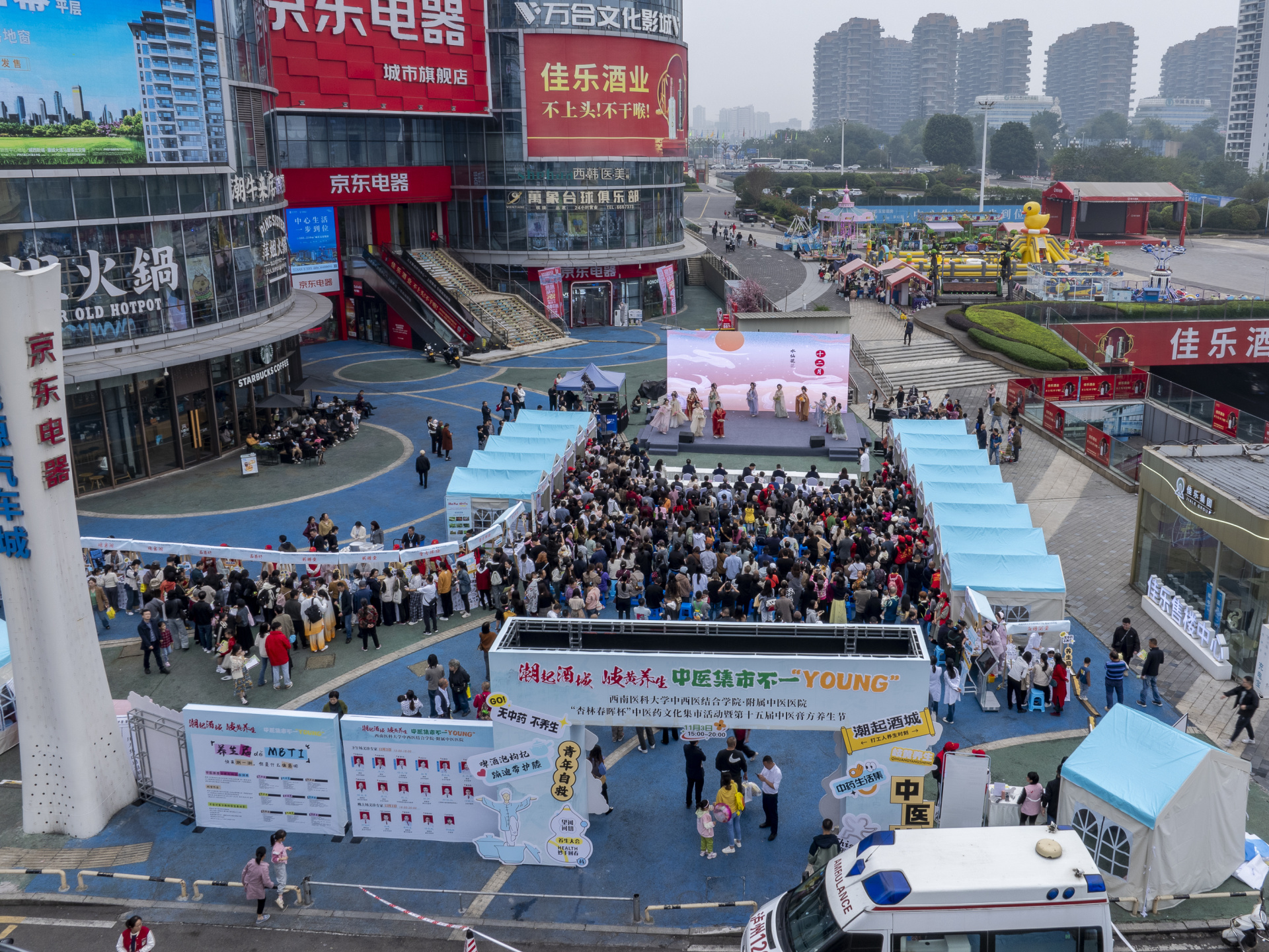 2024年11月3日,我院在欢乐汇广场举行了主题为“潮起酒城 岐黄养生 中医集市不一‘young’”的“杏林春晖杯”中医药文化集市活动暨第十五届中医膏方养生节。中共泸州市委宣传部副部长、泸州市文化广播电视和旅游局党组书记、局长李凌,泸州市卫生健康委员会党组成员、副主任赵秋,医院党委副书记雷学举,副院长汪国友、董丽,华阳街道、春景社区相关领导,医院部分专家职工及市民朋友参加了活动。