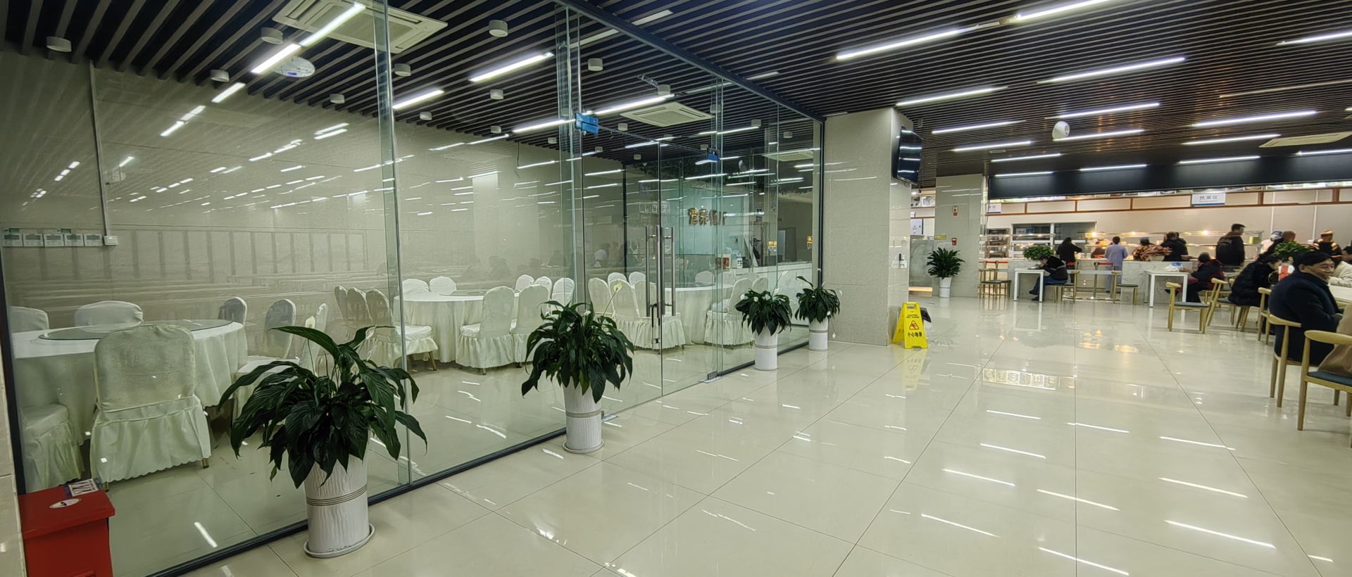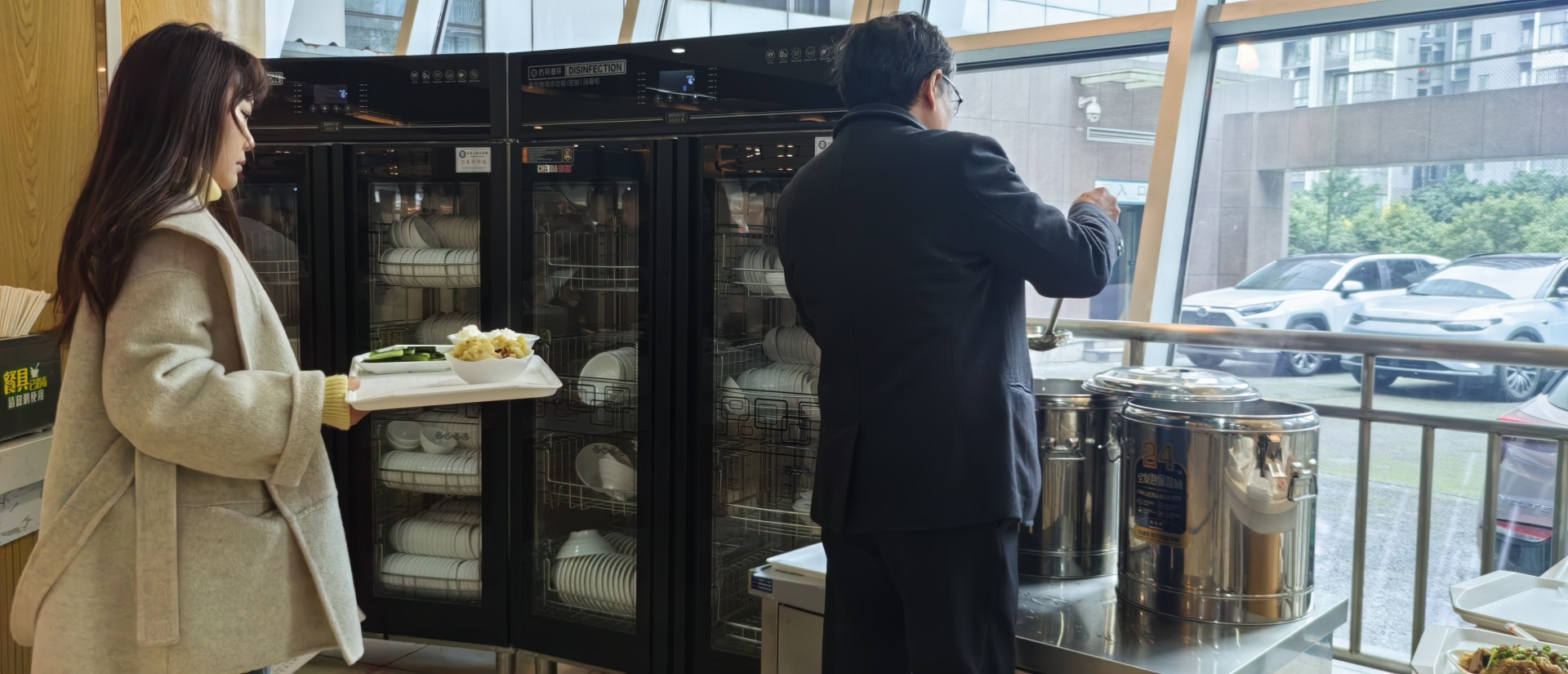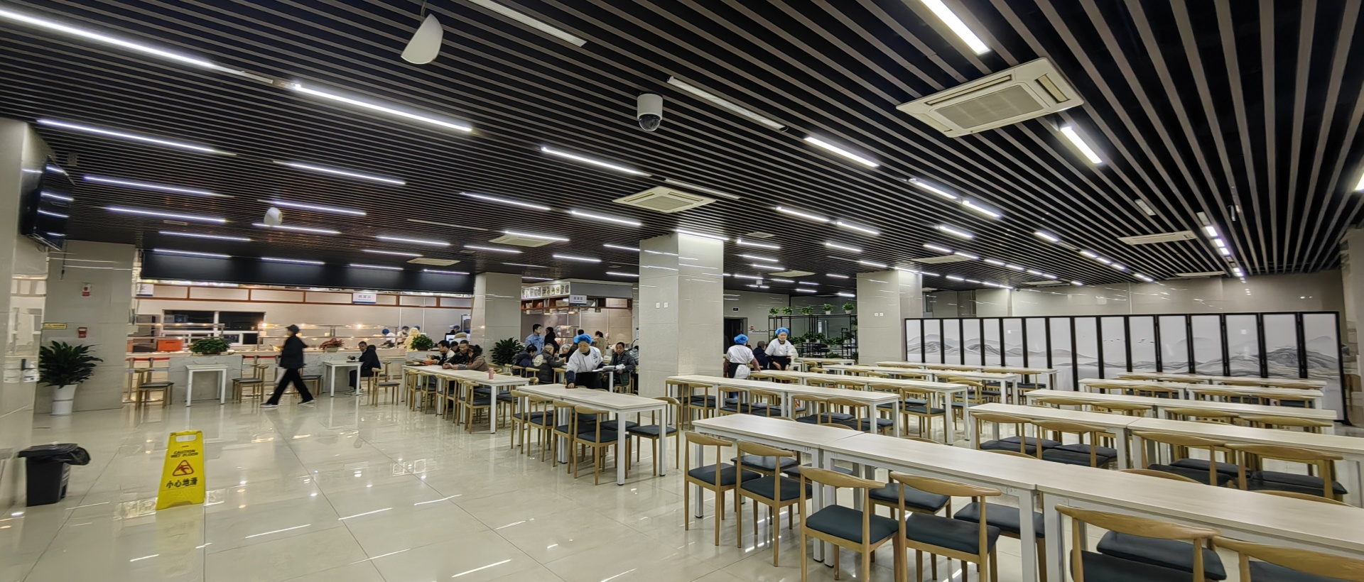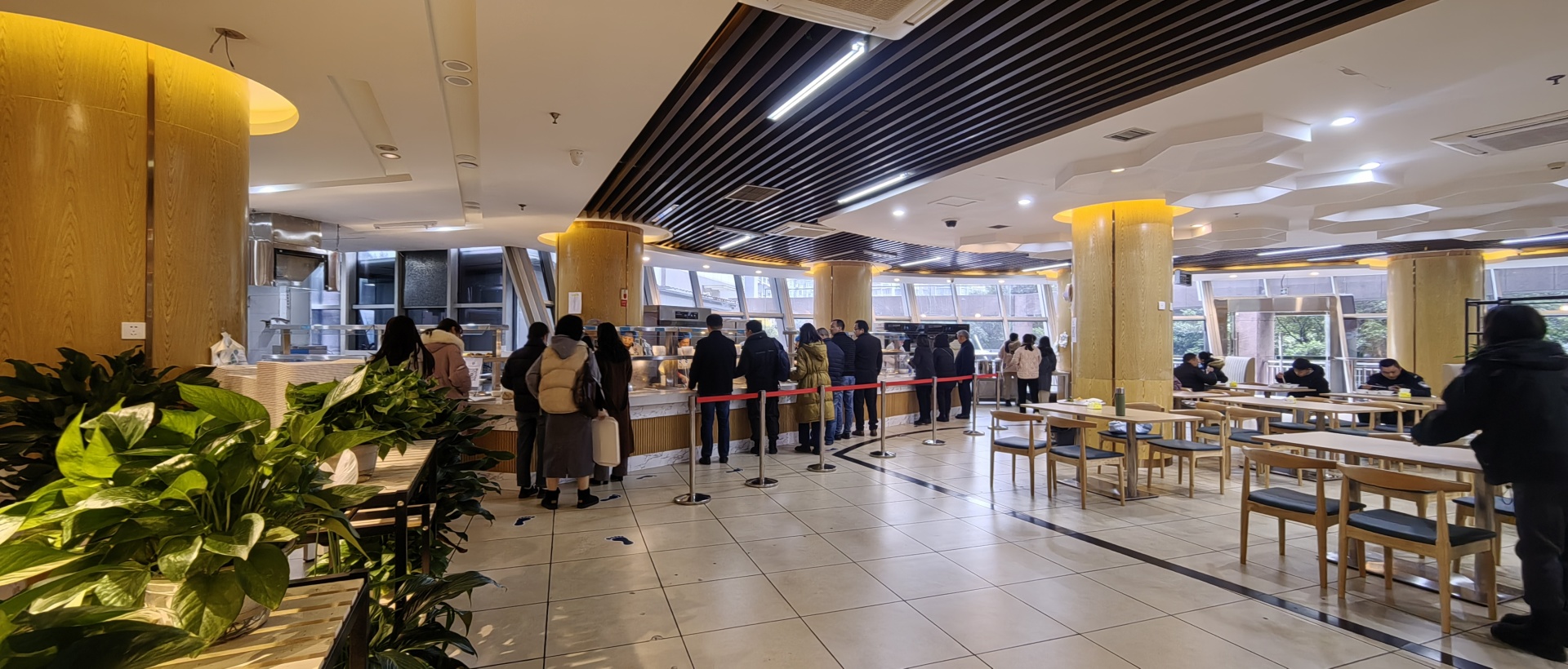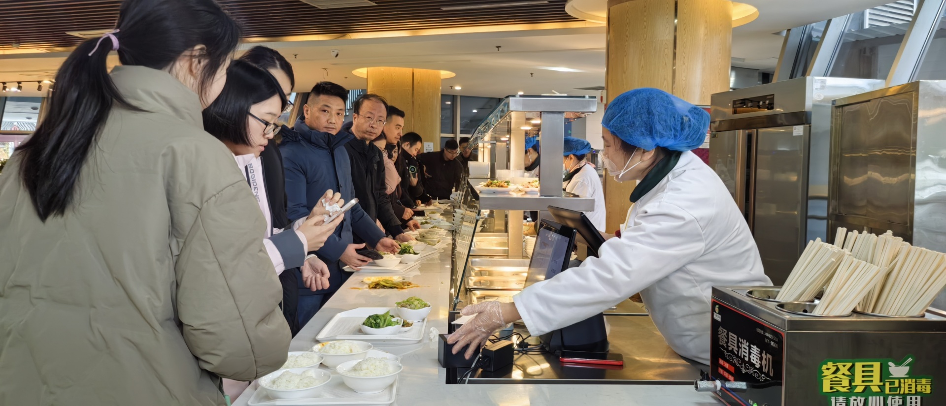 职工餐厅里,陆续有员工三三两两地迈步进来……