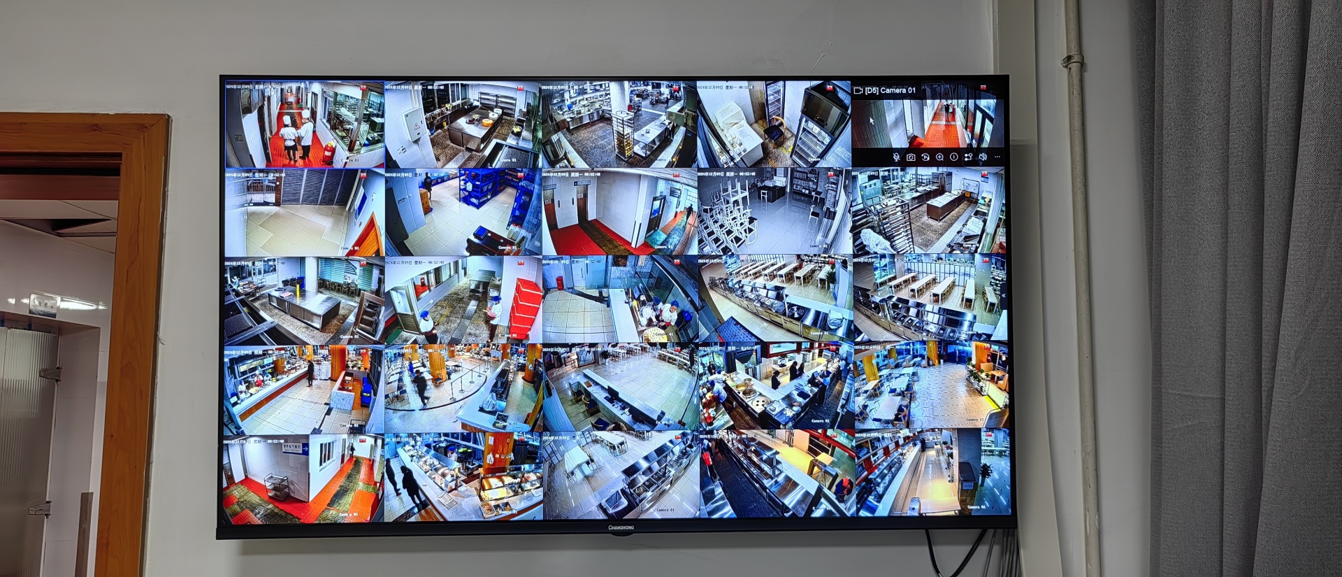 分布在后厨各个角落的监控,关注着所有员工和设备的实时情况,食品的卫生安全得以充分保障。