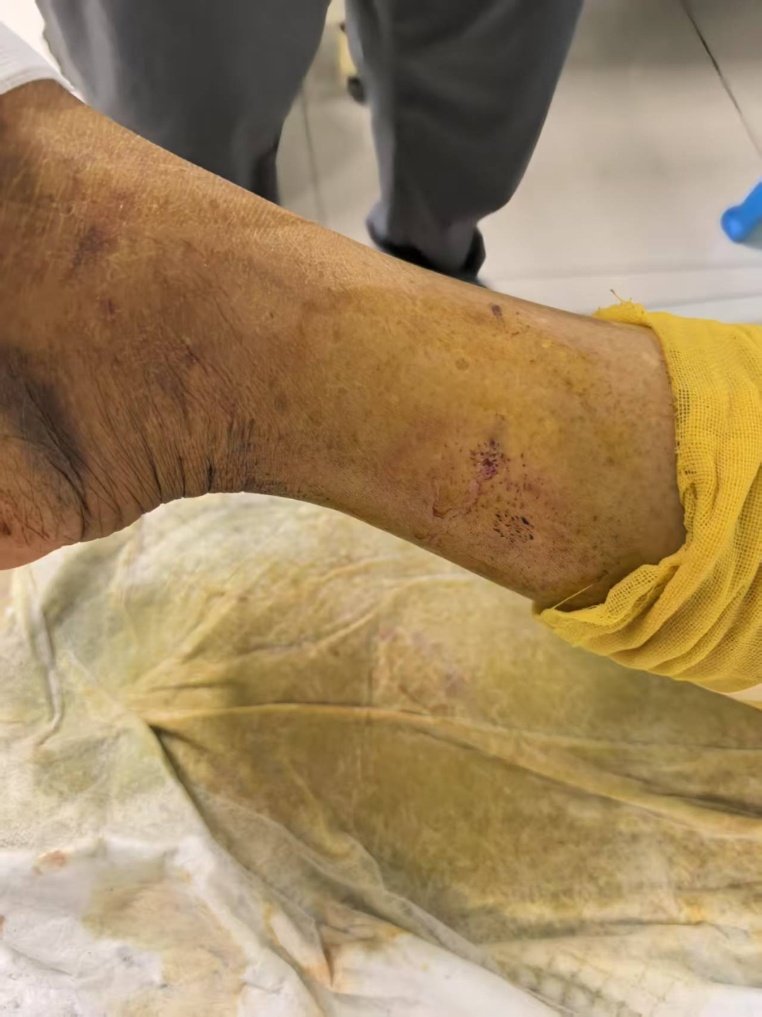 无独有偶,就在几天前,61岁的刘大叔在田间辛勤劳作时,也遭遇了毒蛇的袭击,左踝被咬伤。伤口处渗血并伴有疼痛,刘大叔没有选择立刻前往医院,而是自行采用草药外敷的方法进行处理。