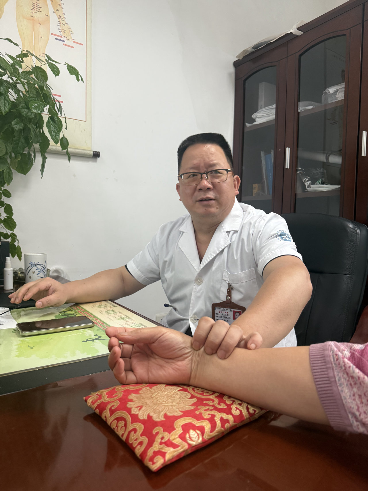 鲜玉军耐心地听她讲完病情,便将指尖搭在患者寸口脉上:“脉沉细,舌体胖大还有齿痕……”鲜医生一边诊断,一边分析,最终判断她属于气滞湿阻证、血虚生风证,需要润燥止痒。