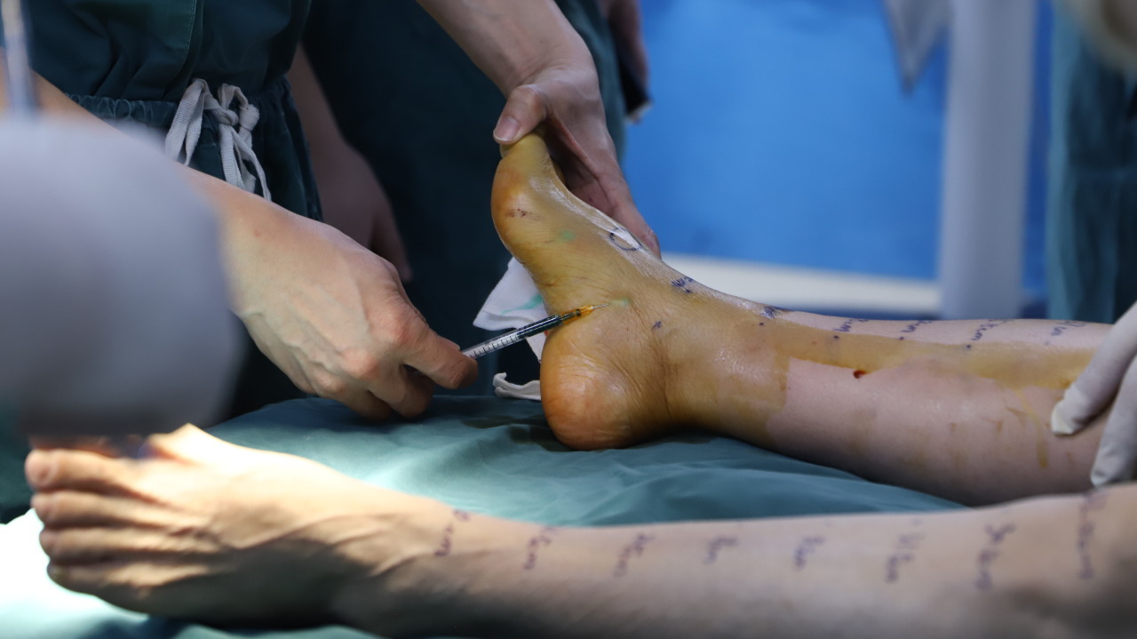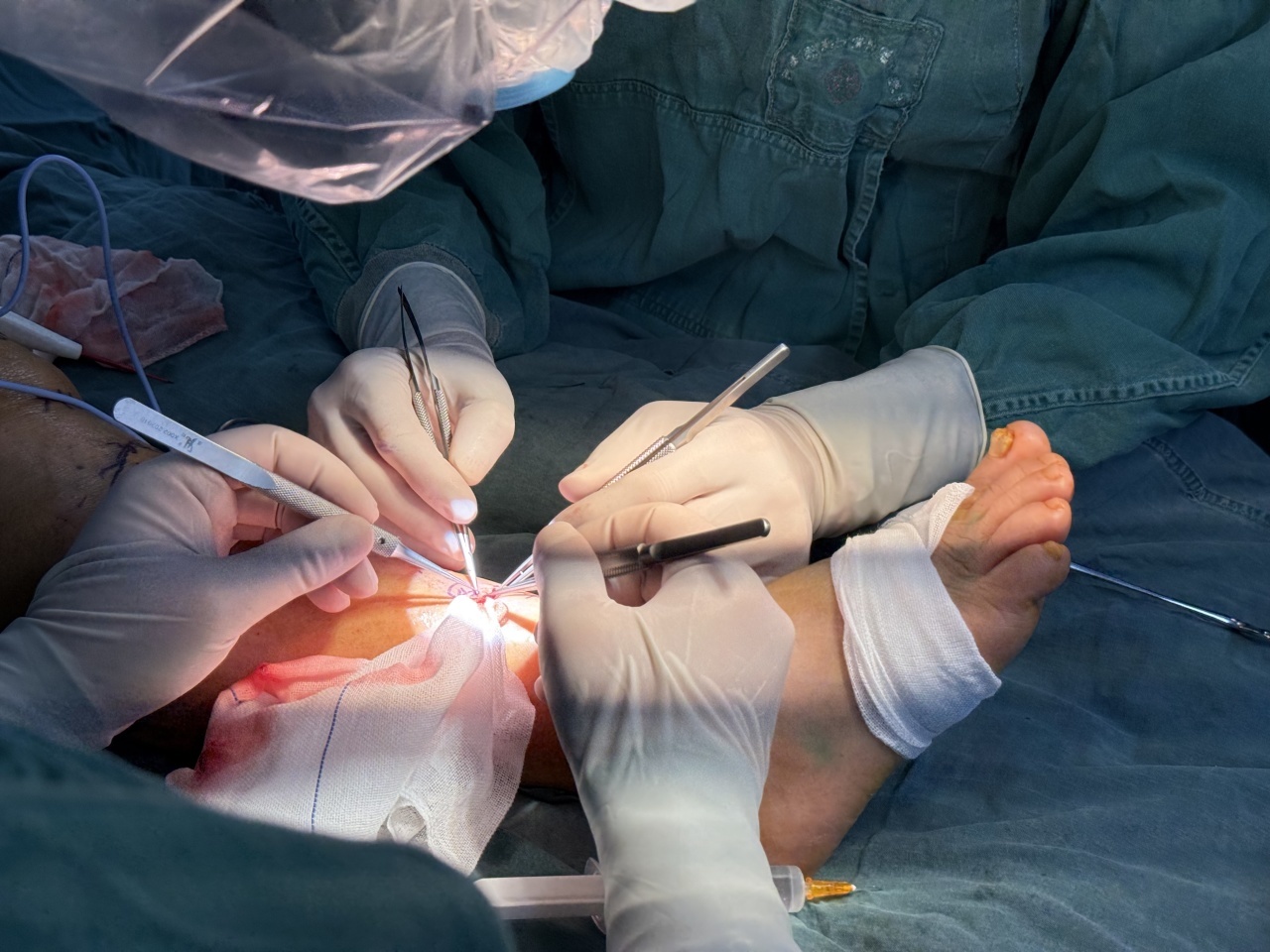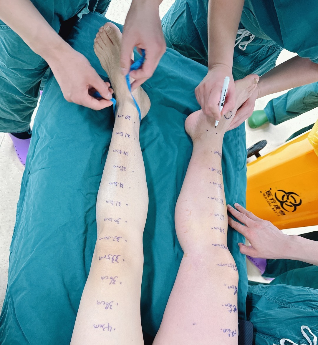 在完善术前检查并经过多学科讨论后,陈孝均团队对王阿姨的病情进行了全面评估。考虑到其处于淋巴水肿早期阶段,且反复物理治疗、淋巴液穿刺等治疗效果不佳,团队决定采用超显微外科技术——右下肢淋巴管 - 静脉吻合术(LVA)进行治疗。
