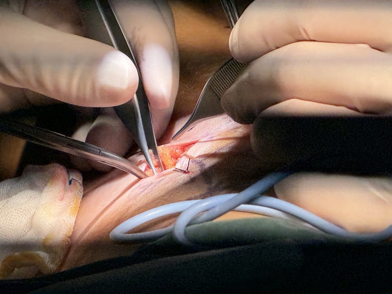 医生们使用0.01mm的手术线,将淋巴管与静脉进行精细缝合,成功重建了淋巴回流通路。