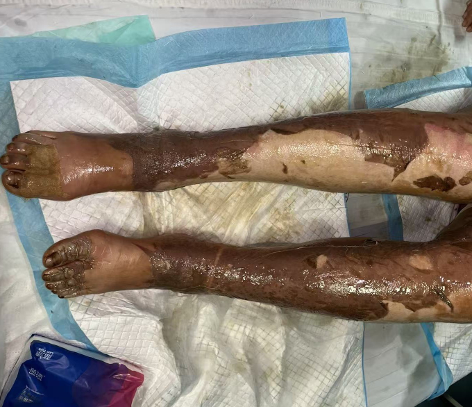 入院检查显示,刘女士颌面部、颈部、双上肢、躯干部及双下肢均有不同程度烧伤,经诊断为中重度烧伤,累及体表30%-39%面积。“这么大面积的烧伤,最危险的是休克和体液大量丢失。”主治医师贺智榆介绍。