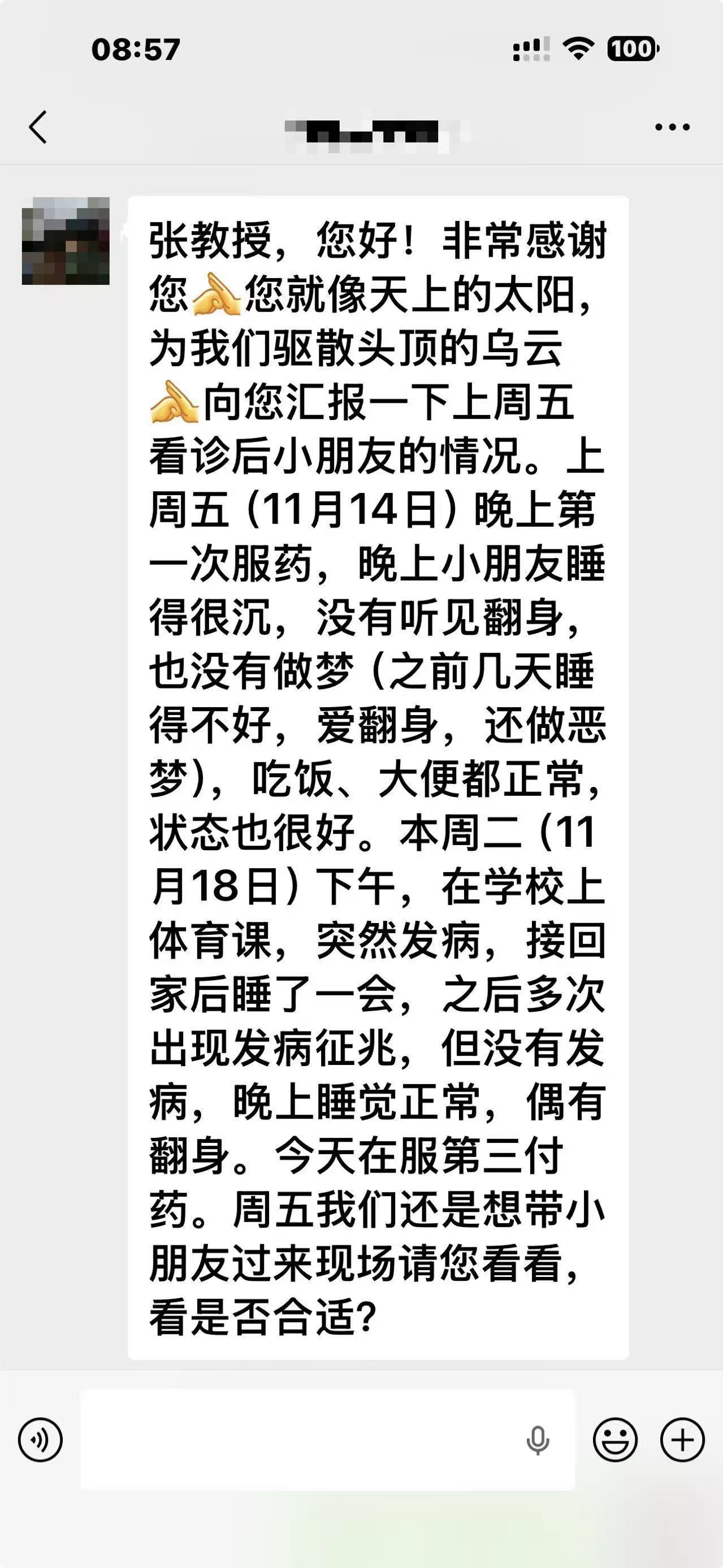 第一次服药后,家长发来信息表示感谢