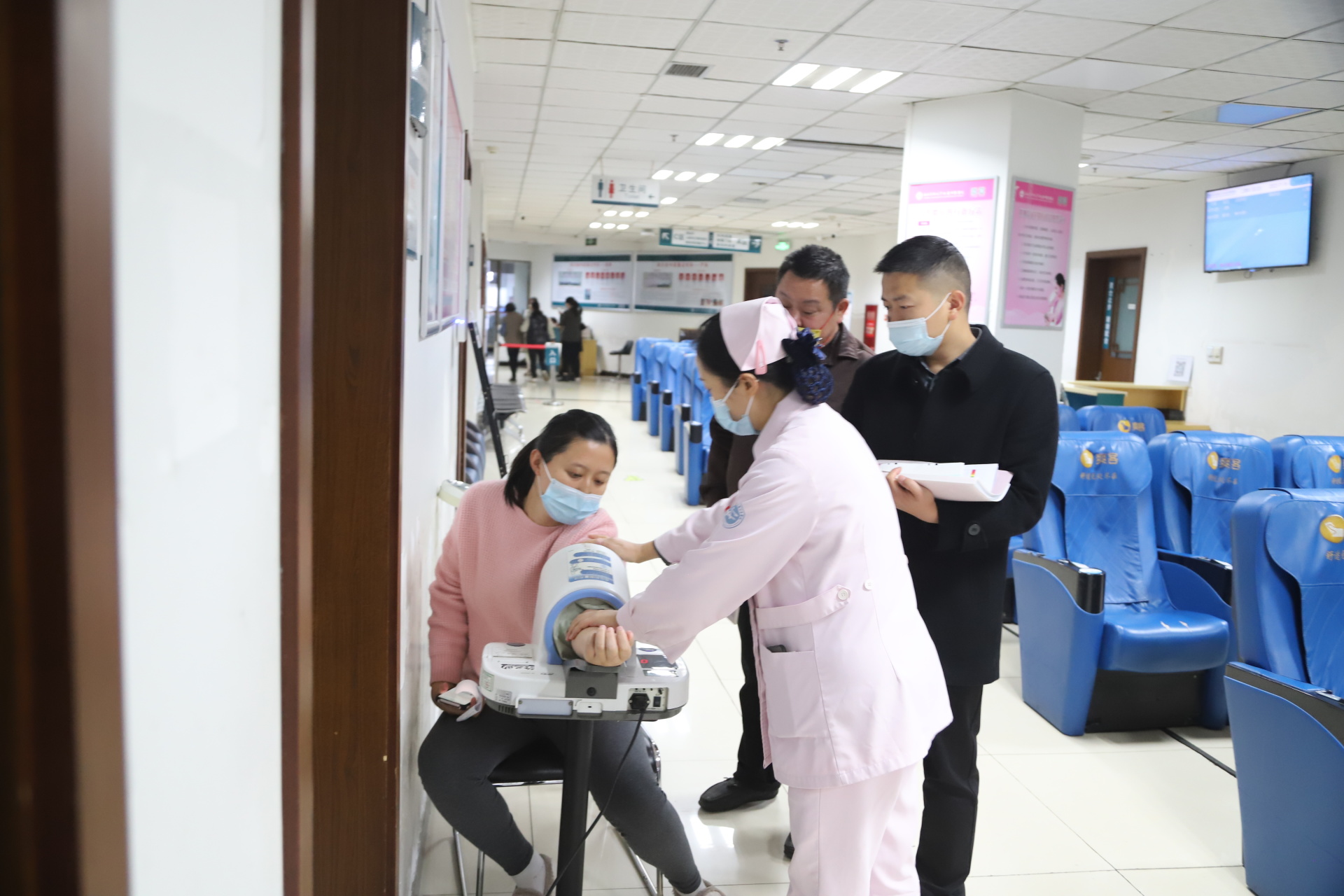 为孕产妇们进行日常产检、胎心监护、血压监测等配套检查;配合医生为孕产妇进行对症治疗;还要为每个孕产妇进行产前检查建档,个人基础信息、身体状况、家庭情况……她们忙得不亦乐乎。
