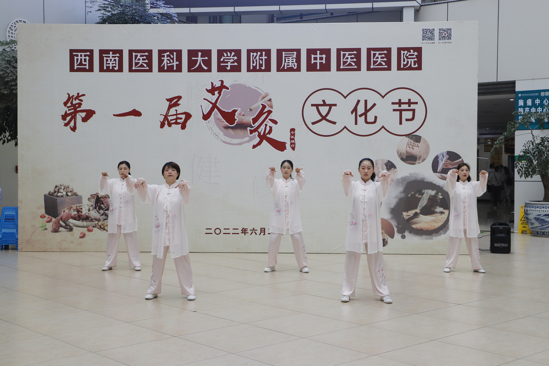 活动在太极拳表演中拉开序幕。随后,医务人员现场向大家展示了艾草从草本植物状态到艾绒、艾柱、艾条、艾饼等成品,再到应用葫芦、铜棒、陶罐等器具形成各种中医灸法的过程。