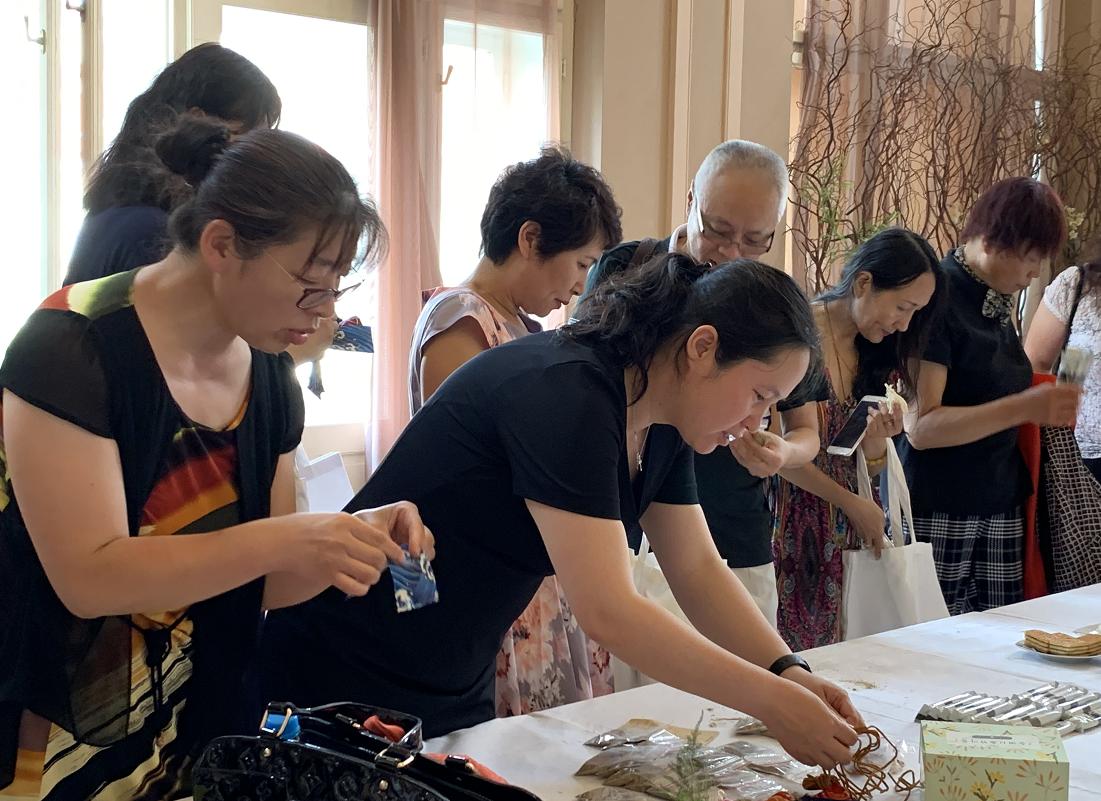 与会人员学习制作中医香囊