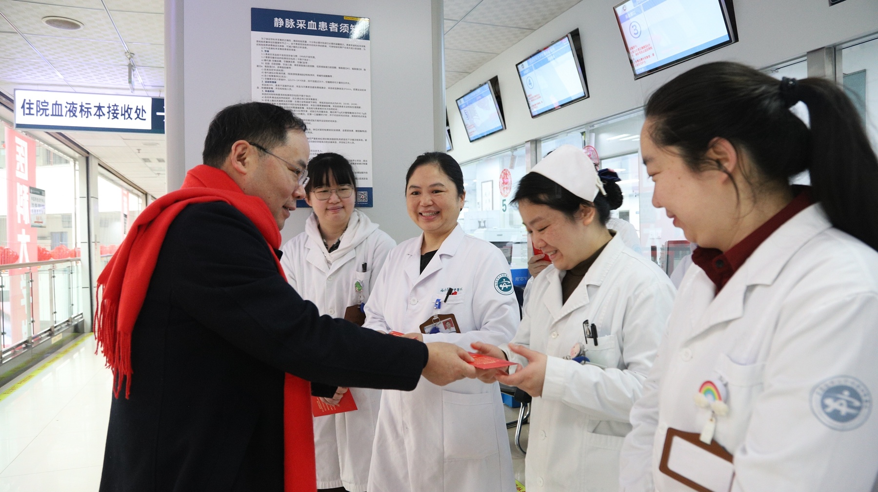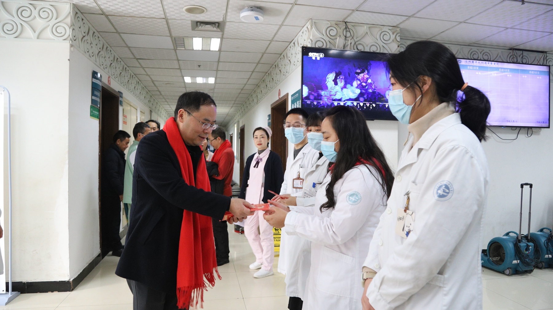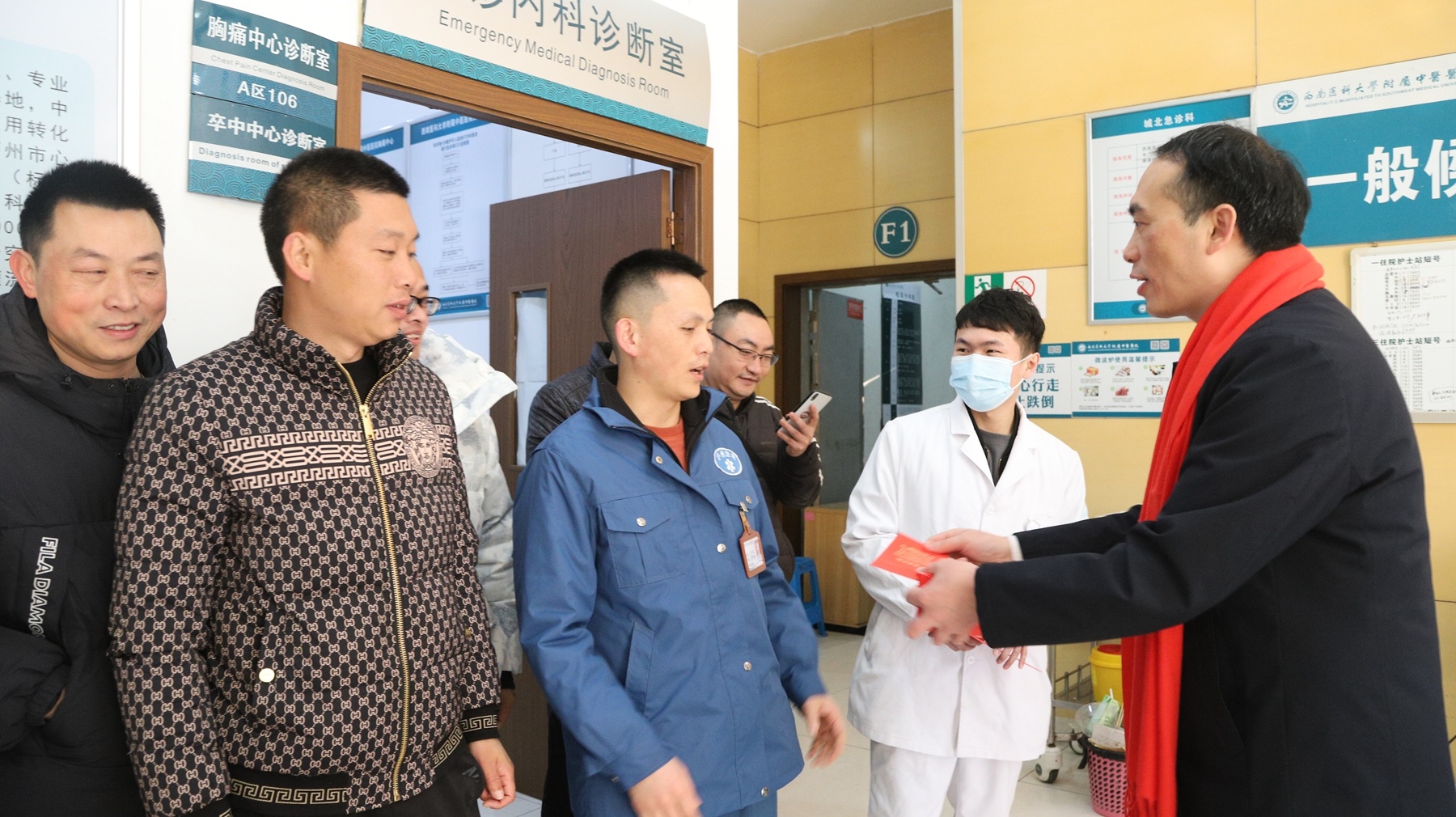 2024年2月10日,我院党委书记李志、院长刘建等党政领导带领相关职能部门人员分别到城北院区、忠山院区、水井沟院区慰问坚守工作岗位的员工,对他们奋战一线、坚守岗位表示感谢,并送上新春祝福。