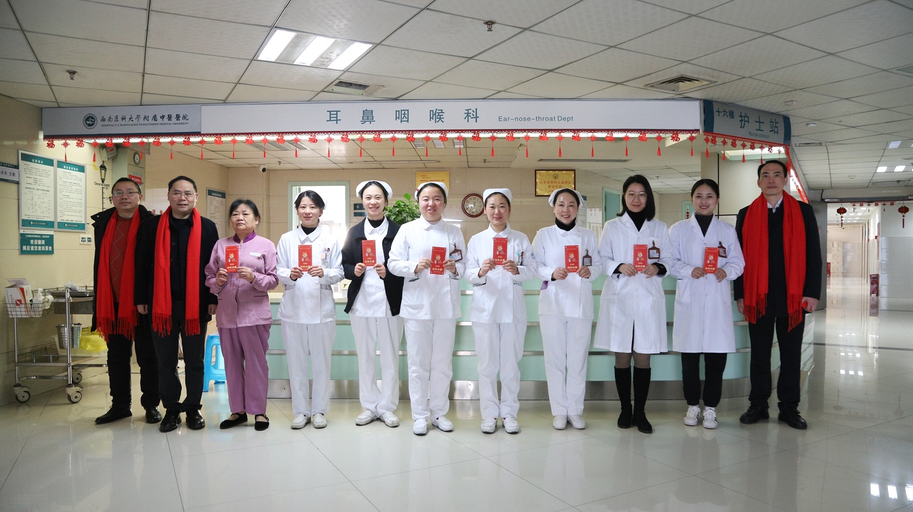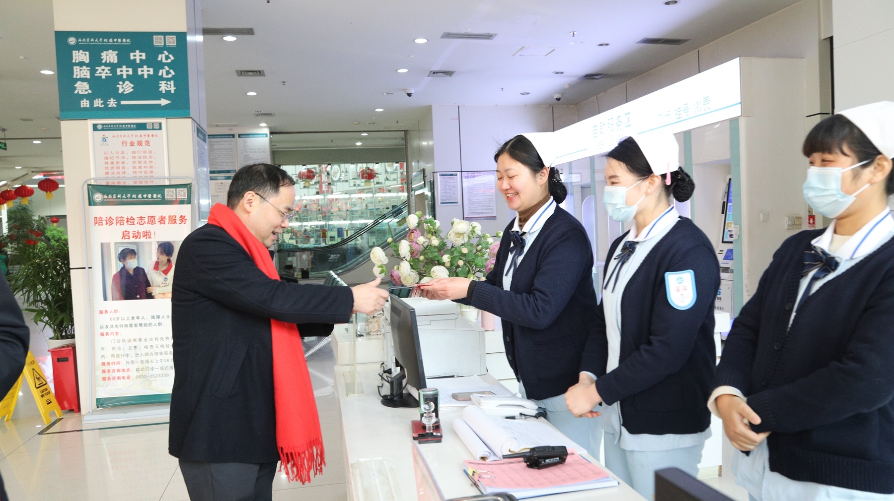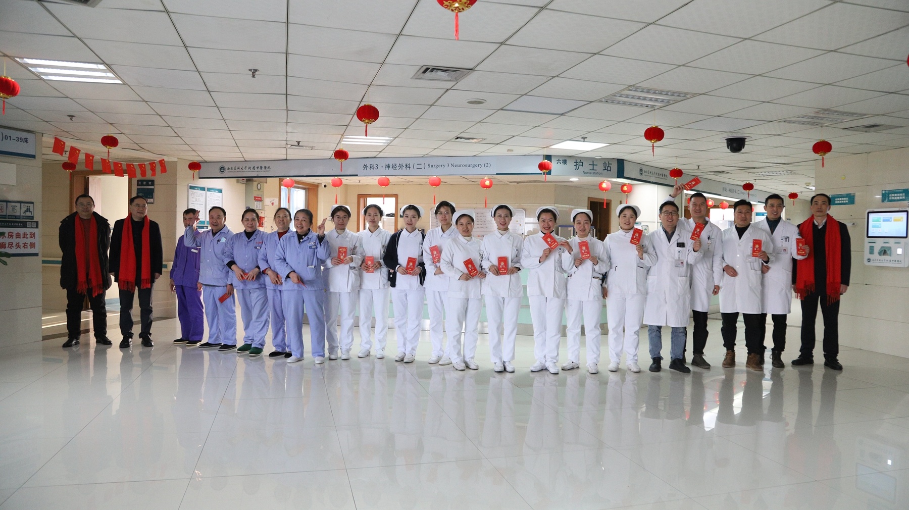 2024年2月10日,我院党委书记李志、院长刘建等党政领导带领相关职能部门人员分别到城北院区、忠山院区、水井沟院区慰问坚守工作岗位的员工,对他们奋战一线、坚守岗位表示感谢,并送上新春祝福。