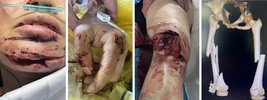 2024年2月18日,泸州市泸县发生一起严重车祸,急诊120将在车祸中收上的伍女士火速送至医院。入院时,伍女士出血量大,处于失血性休克状态,全身多处开放性伤口及粉碎性骨折。下巴有10cm左右伤口,且下颌骨外露,左侧股骨闭合性骨折。最严重的是右膝关节开放性损伤,伤口约30cm,右股骨及髌骨粉碎性骨折,骨折断端外露,还有很多碎石及泥沙残留……