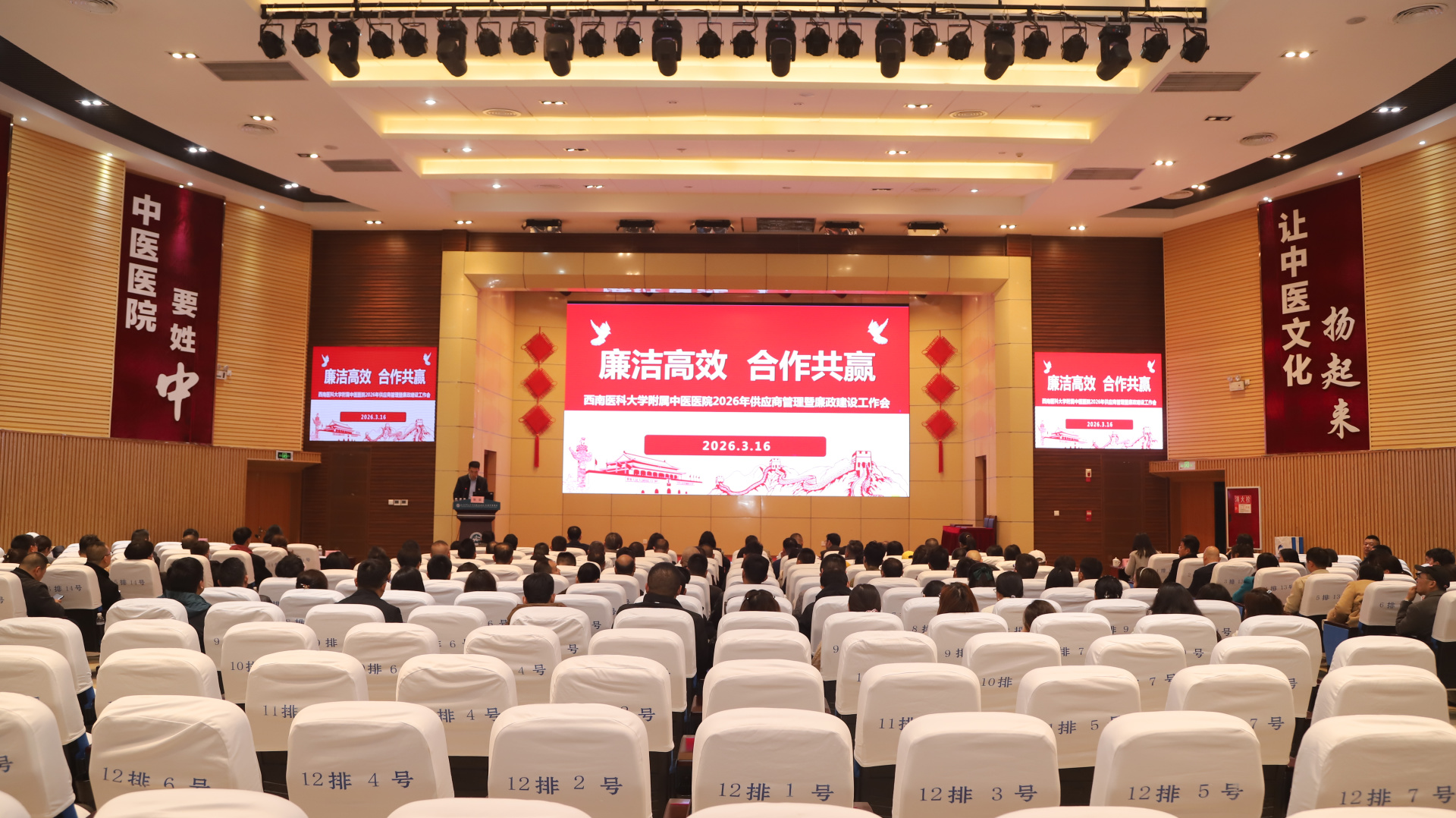 3月16日,我院召开以“廉洁高效 合作共赢”为主题的2026年供应商管理暨廉政建设工作会。医院党委书记代天祥,党委副书记、纪委书记鄢飞鹏,副院长张磊,相关职能部门负责人及168家试剂、耗材、药品、物资供应商参加了会议。会议由张磊主持。