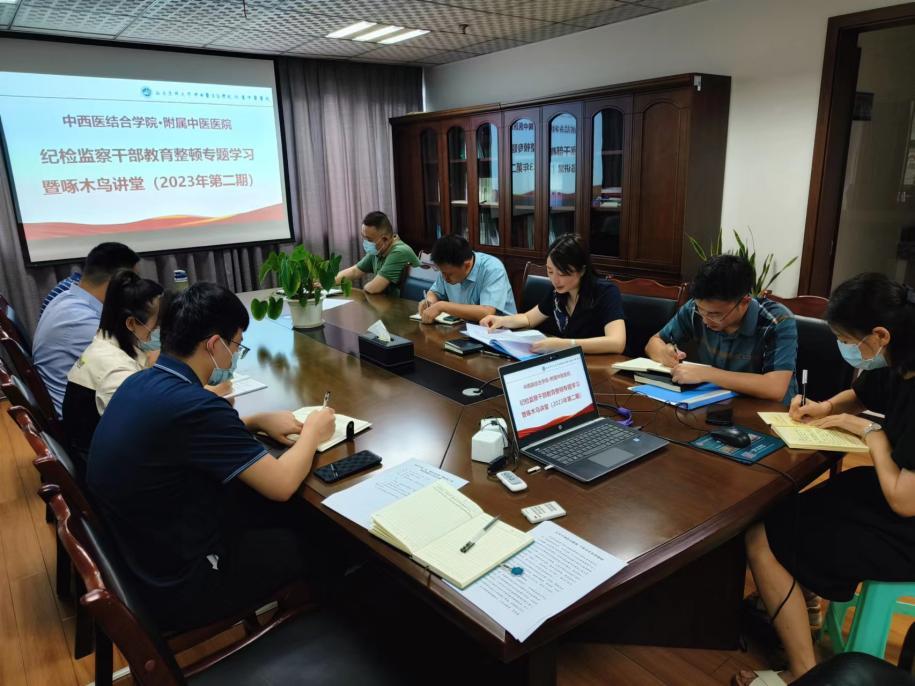2023年5月29日,我院纪委举办纪检干部教育整顿学习会暨2023年第二次“啄木鸟讲堂”,党委副书记、纪委书记徐茜、医院纪委委员、专职纪检干部、审计部工作人员参加了会议。会议由徐茜主持。
