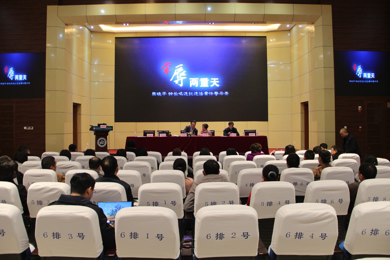 会议现场 会议邀请了泸州市纪委副书记·监察委员会副主任徐其虎为参会人员作了专题教育报告。徐其虎书记从政治建设、作风建设、惩治腐败、纪律建设等方面对当前正风反腐的形势和任务进行了讲解和分析。