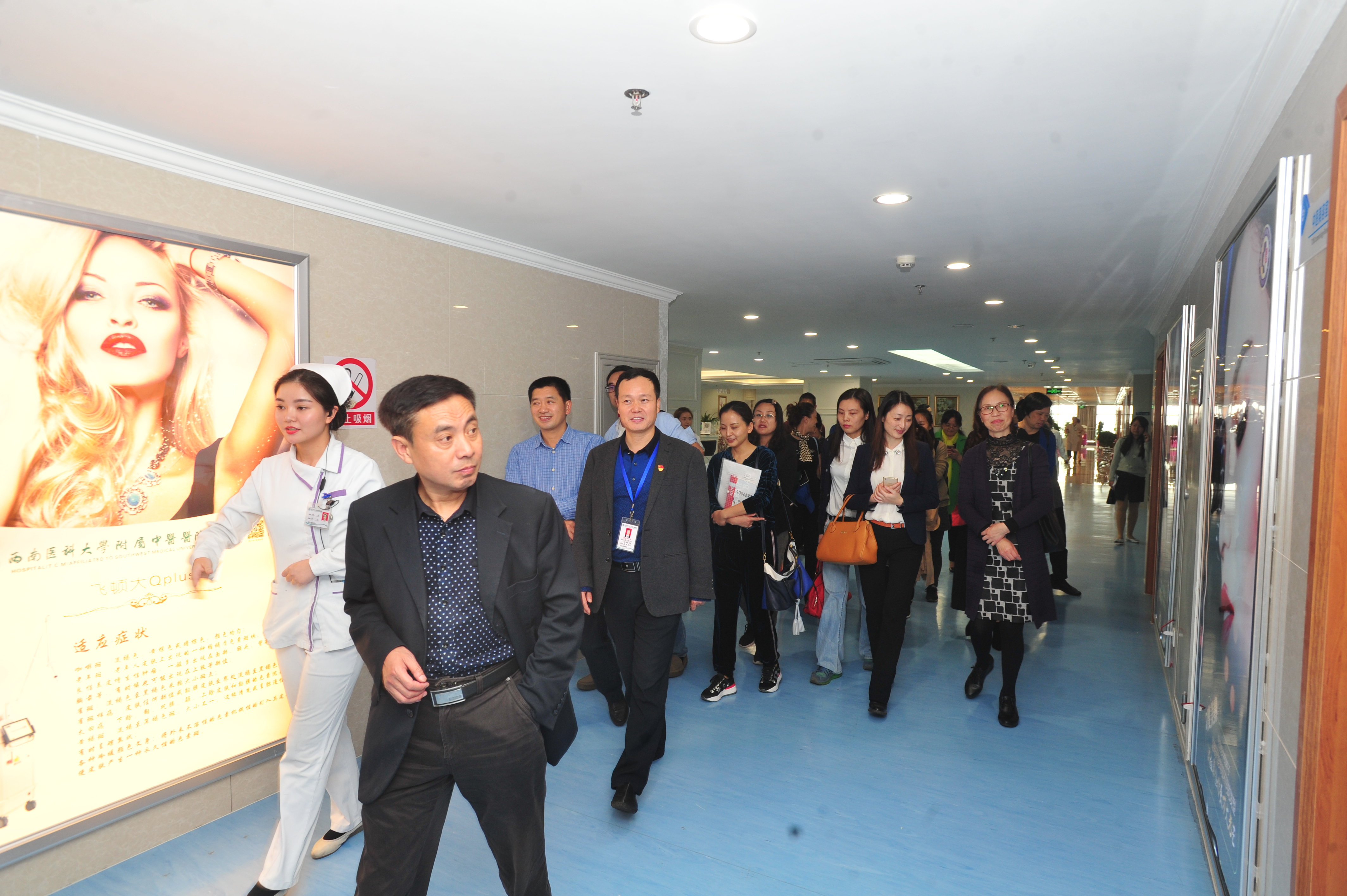 会前,刘广益书记一行在医院赵国强书记的陪同下参观了医院中医药文化·院史博物馆、医学美容中心及健身中心等地。