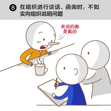 新修订的《中国共产党纪律处分条例》列出了欺瞒组织、对抗审查行为的负面清单,广大党员干部在向组织请示报告,或者接受组织的谈话函询、纪律审查时,务必忠诚老实,对以下行为说“不”: