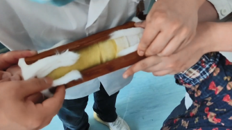 技术简介:骨折手法整复是指医者用指、掌、腕及臂的劲力,结合身功辅以器械,随症运用各种技巧,作用于患部,整复骨折移位的一种治疗方法。基本手法包括:手摸心会、拔伸牵引、旋转屈伸、提按端挤、摇摆触碰、夹挤分骨、折顶回旋、推拿按摩。骨折手法整复后再外敷传统中药制剂,杉树皮小夹板固定患处,达到治疗骨折的目的。