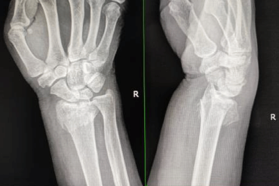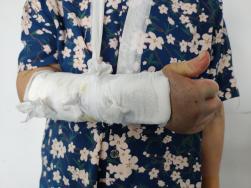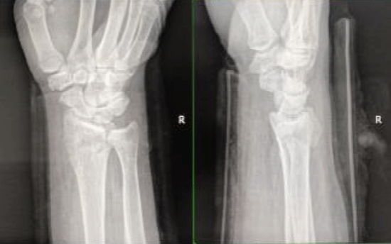 骨折手法整复、小夹板固定、固定后外观及复查X片