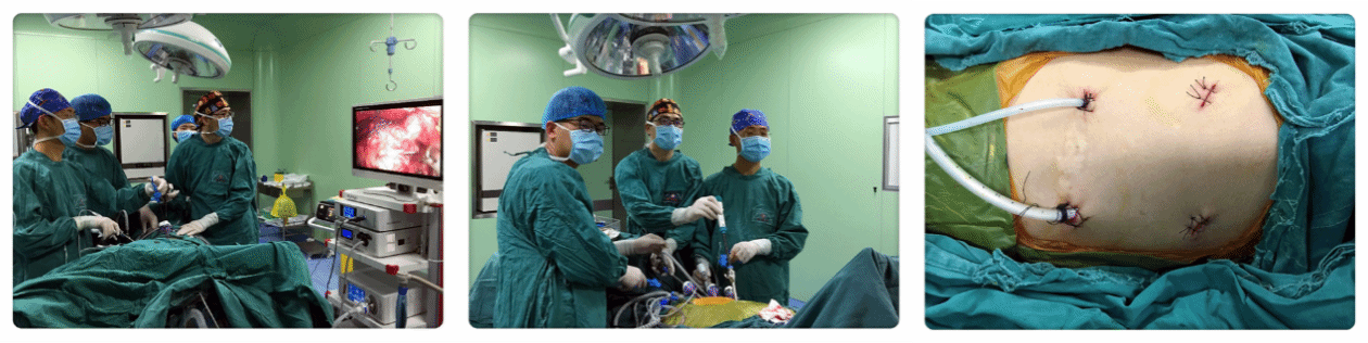 (2)全腔镜下食管癌根治术只要在胸部及腹部做4-5个0.5-1cm小切口即能完成手术,对心、肺功能的影响小。创伤小、疼痛轻、恢复快、且美观,我院率先在泸州地区开展此技术,技术水平处于川南领先地位。