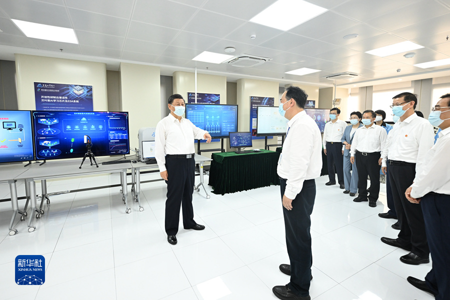 7月5日至7日,中共中央总书记、国家主席、中央军委主席习近平在江苏考察。这是6日下午,习近平在南京市考察紫金山实验室时,同科研人员亲切交流。新华社记者 谢环驰 摄