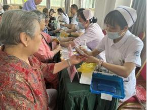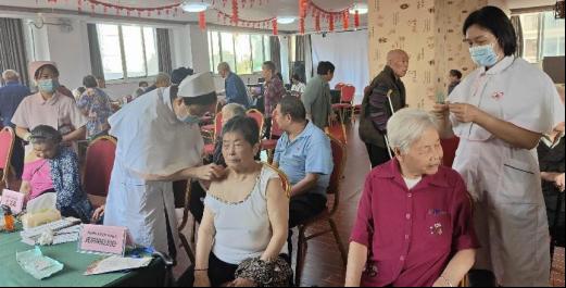 活动中,护理部、客户服务中心、国际交流与对外合作部、感染管理部、预防保健部相关人员联合肾病科、神经内科、骨伤科脊柱·肿瘤二组、普外·疝与腹壁外科、老年病科医务人员,为中颐养老院老人提供了相关疾病诊疗和中医特色护理服务,包括艾灸、耳穴压豆、火龙罐、虎符铜贬刮痧等中医护理特色技术免费体验,医护人员还为老人们测量血压血糖,并开展了手卫生、传染病、食品安全等知识的科普宣教和健康管理咨询。