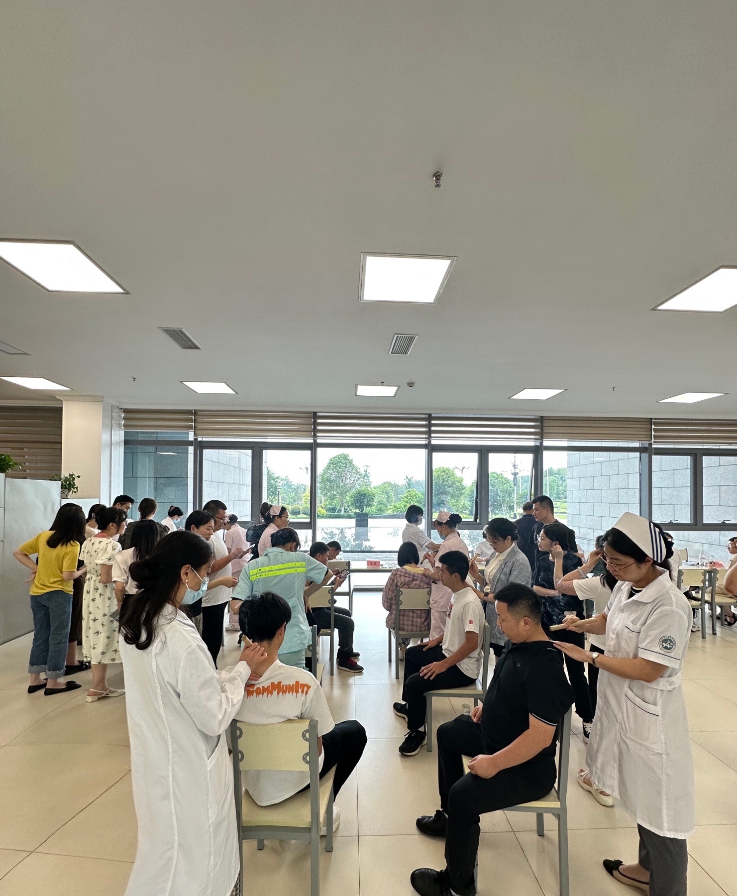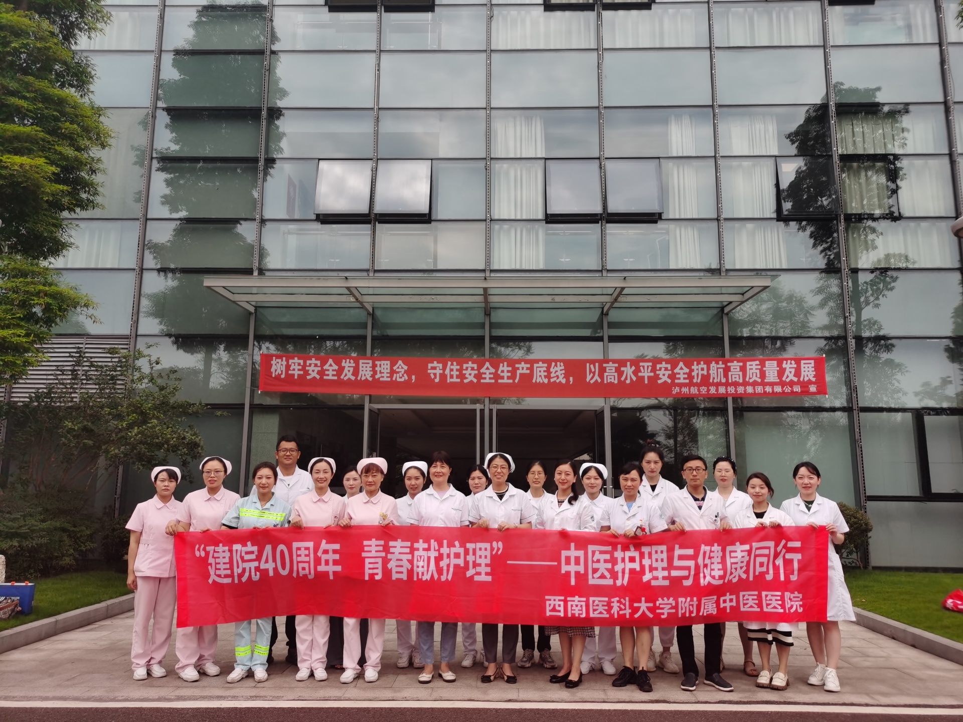 2023年6月9日,护理部、客户服务中心、国际交流与对外合作部组织皮肤科、脾胃·风湿免疫病科、眼科、医学美容中心、骨伤科、呼吸内科、治未病·体检中心等科室专家到泸州航空发展投资集团有限公司和泸州长江经济开发区管理委员会开展了以“建院40周年 中医药服务进企业、进单位”为主题的义诊活动。