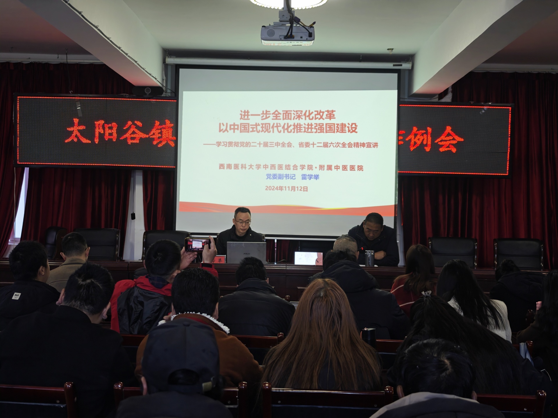 在太阳谷镇11月驻村工作队培训例会上,雷学举以《进一步全面深化改革 以中国式现代化推进强国建设》为题向驻村工作队及当地干部宣讲了党的二十届三中全会精神和省委十二届六次全会精神,并结合乡村振兴有关工作要求作了强调。
